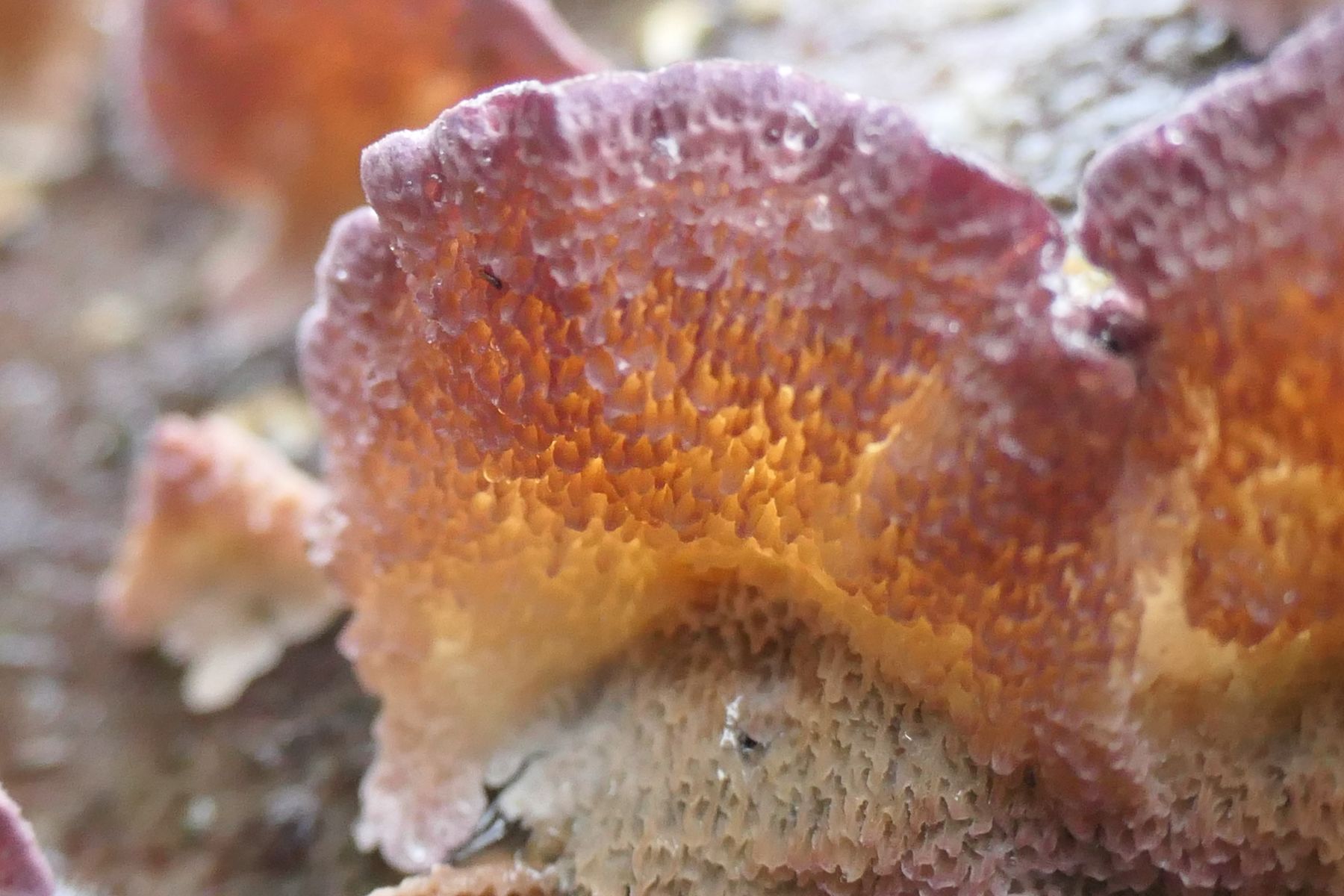 der beobachtete Pilz liegt dem Substrat ziemlich flach an und einen so verdickten FK wie bei Saftporlingen abgebildet konnte ich an den von mir vorgefundenen Expl. nicht sehen.