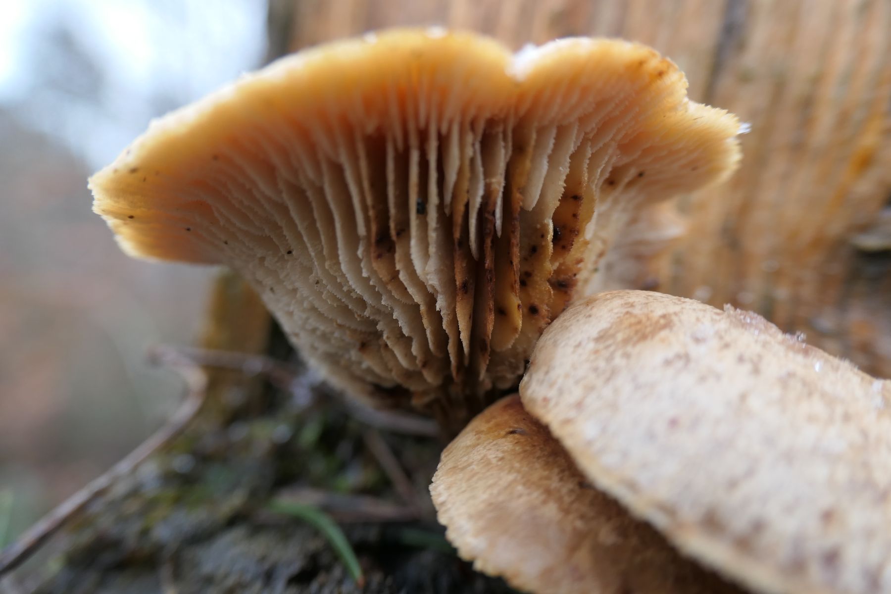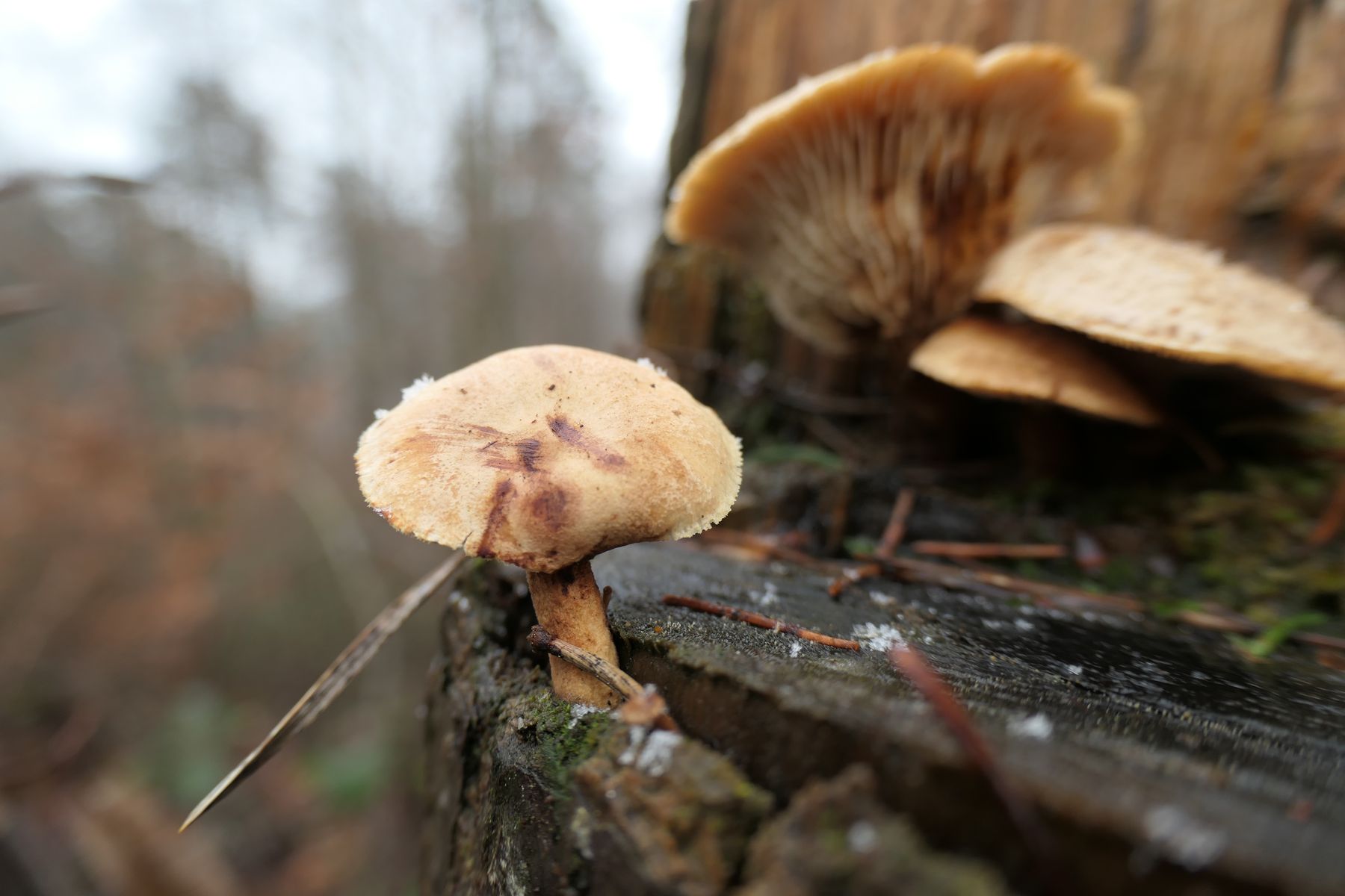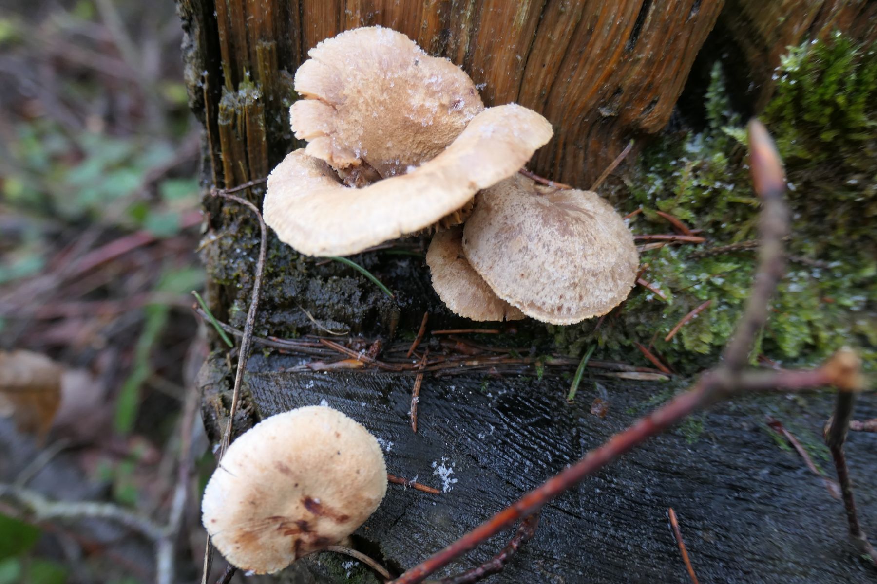 06.01.2023 an verrottetem Baumstrunk (Laub-Nadelholz?), mit starkem Geruch nach..