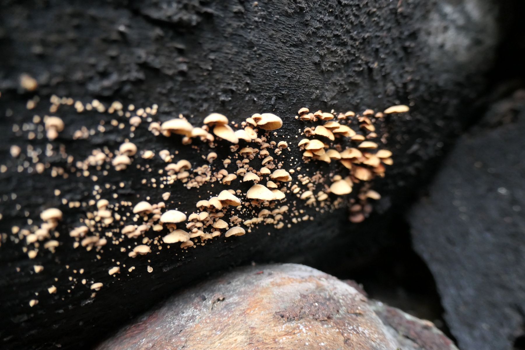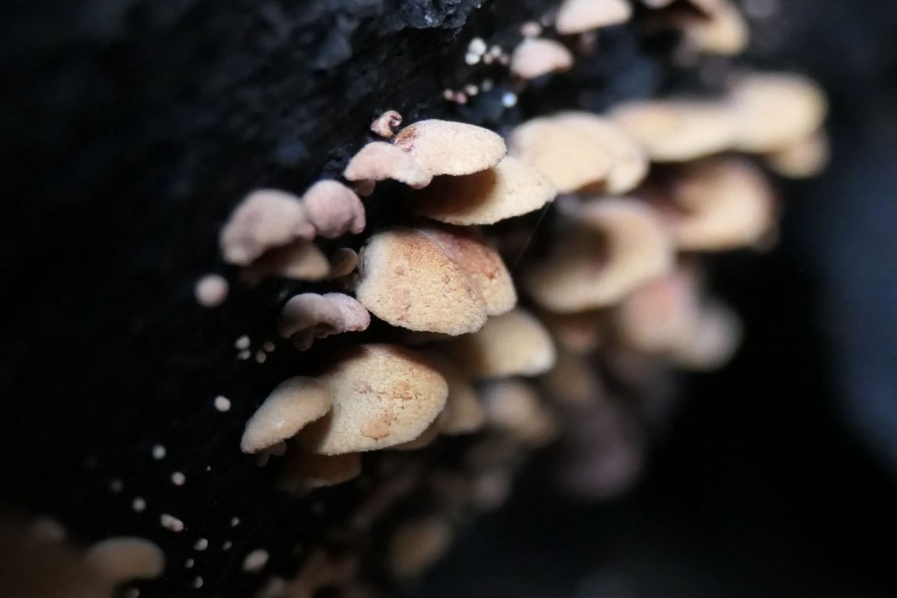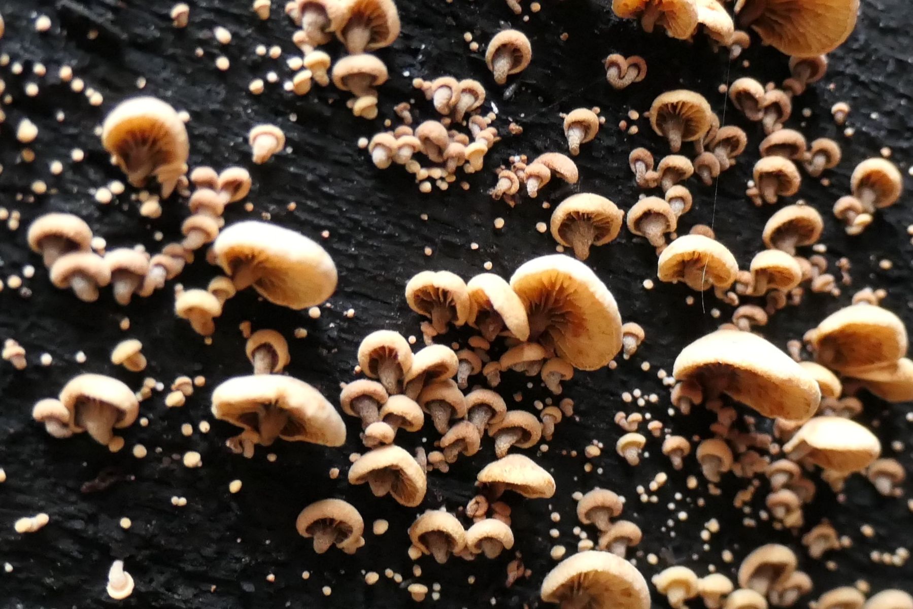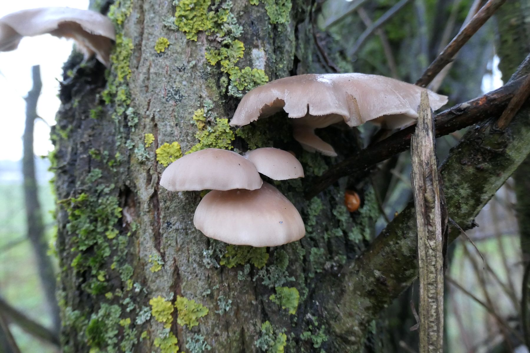 31.12.2022 gesellig wachsend in unserem Garten bei CH-Rüti b. Büren an einem Kreuzdorn (Rhamnus cathartica) , Hüte bis max 1-2 cm gross,