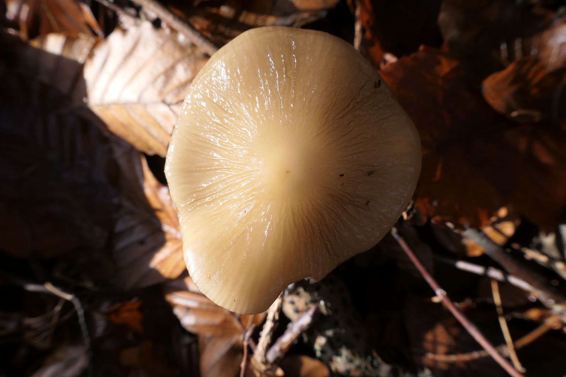 die ich am ehesten bei den Trichterlingen zuordne? - auffällig der etwas wellig gebuckelte Stiel, auf den Fotos nur knapp erkennbar,