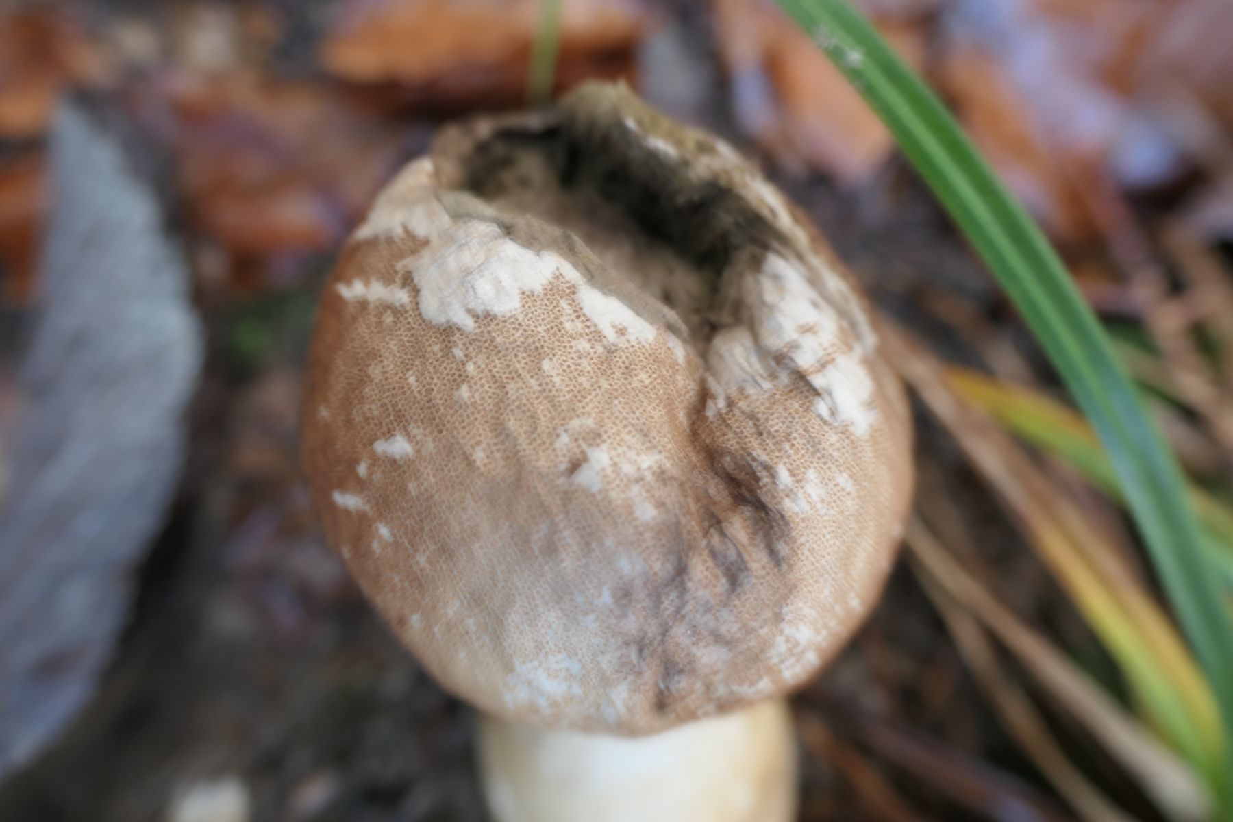 06.12.2022 CH-Grenchen SO Jurasüdfuss, ca 650 m, ein einzelnes Expl. - im Hintergrund mein Zeigefinger zwecks Umkrempeln des Hutes,