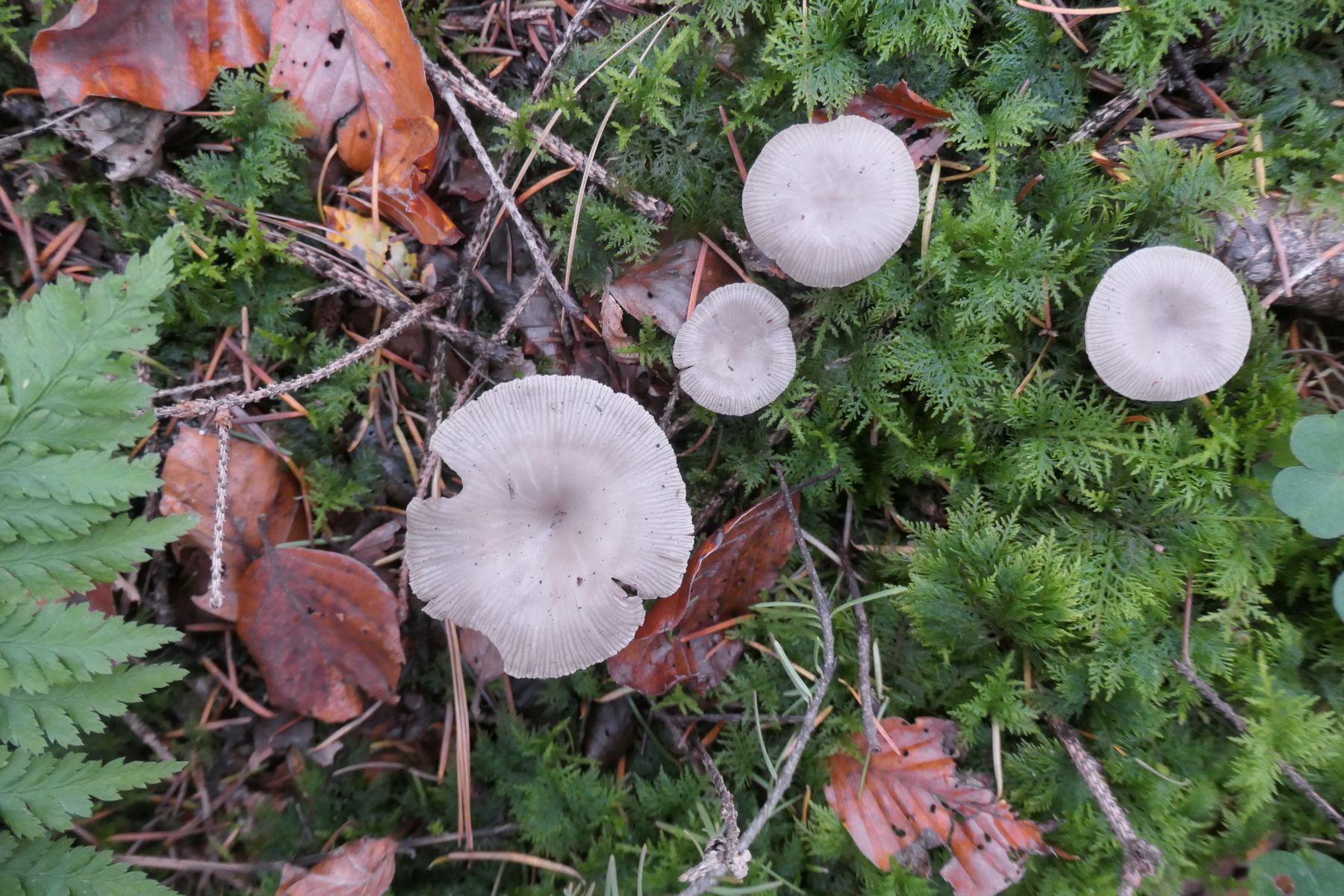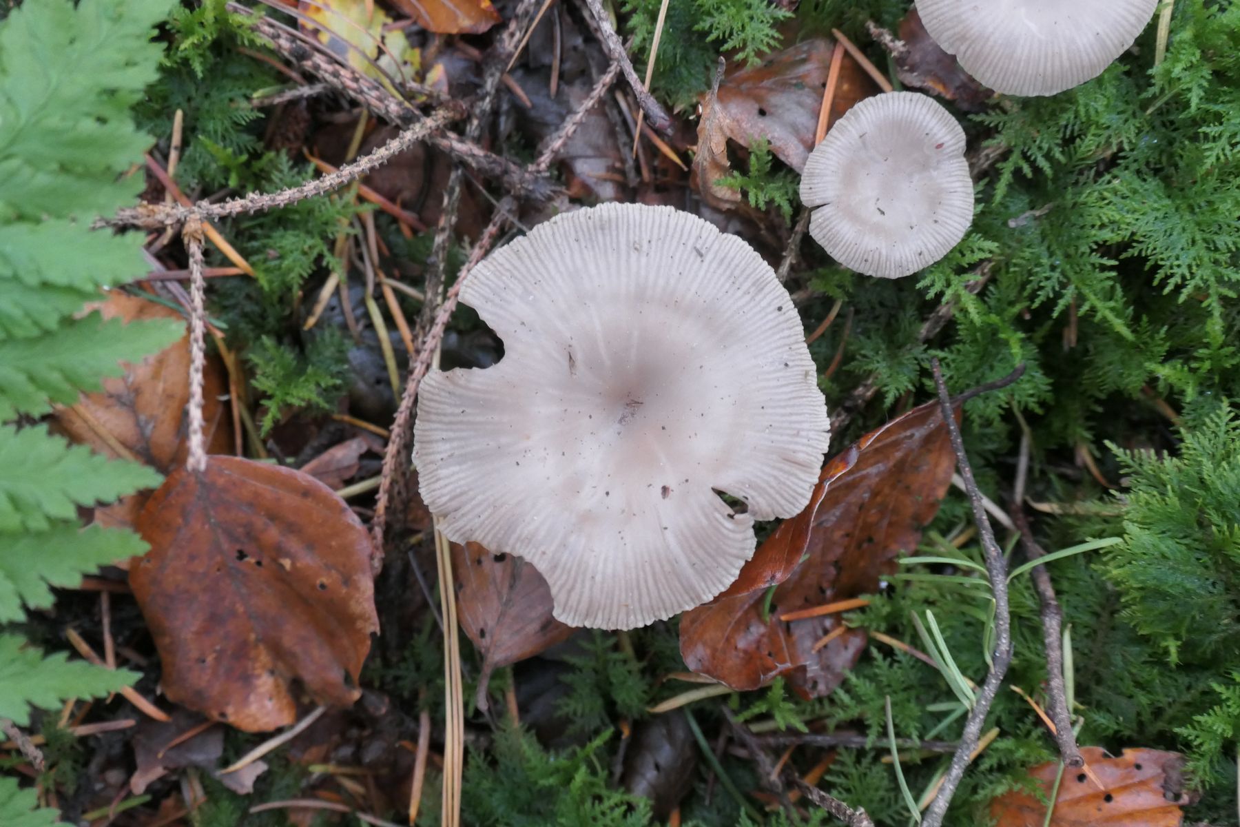 weiss-graue Trichterlige, Hüte gerieft trocken 2-5 cm breit,