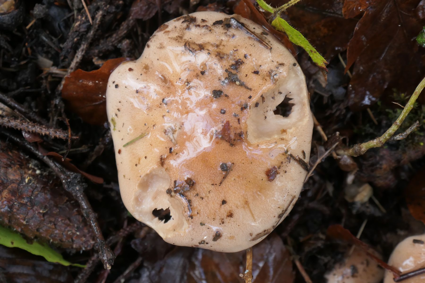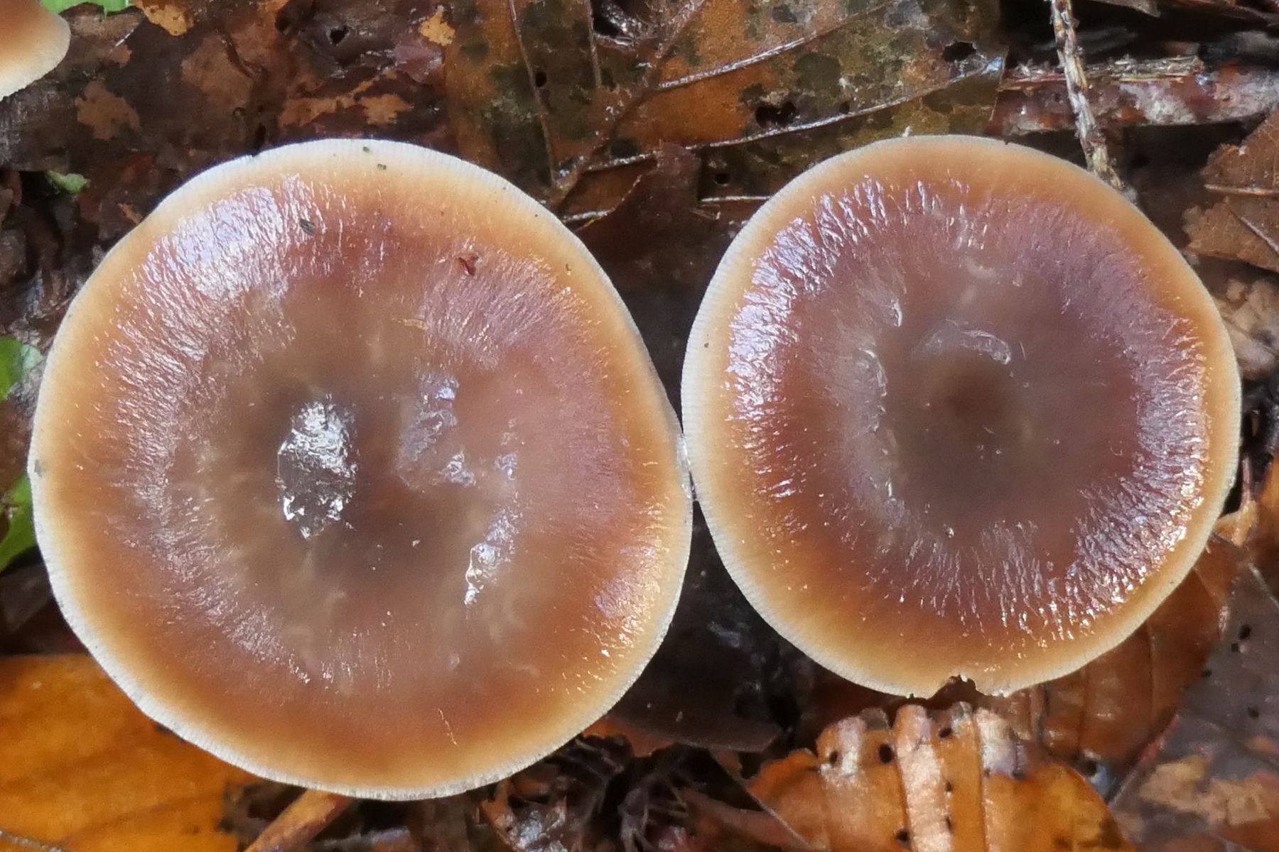 In Nähe von Buche/Eiche/Fichte eine Gruppe frisch stossender Ritterlinge mit schleimigem Hut