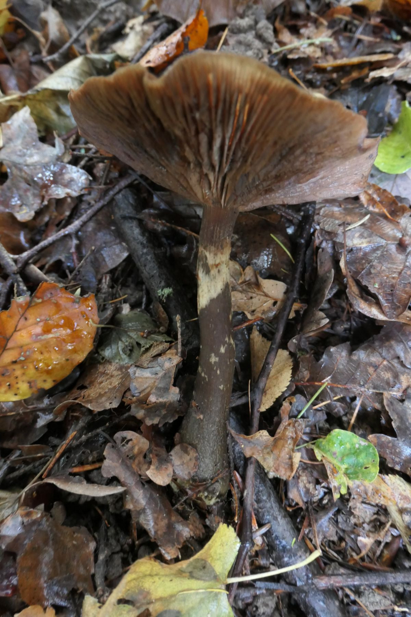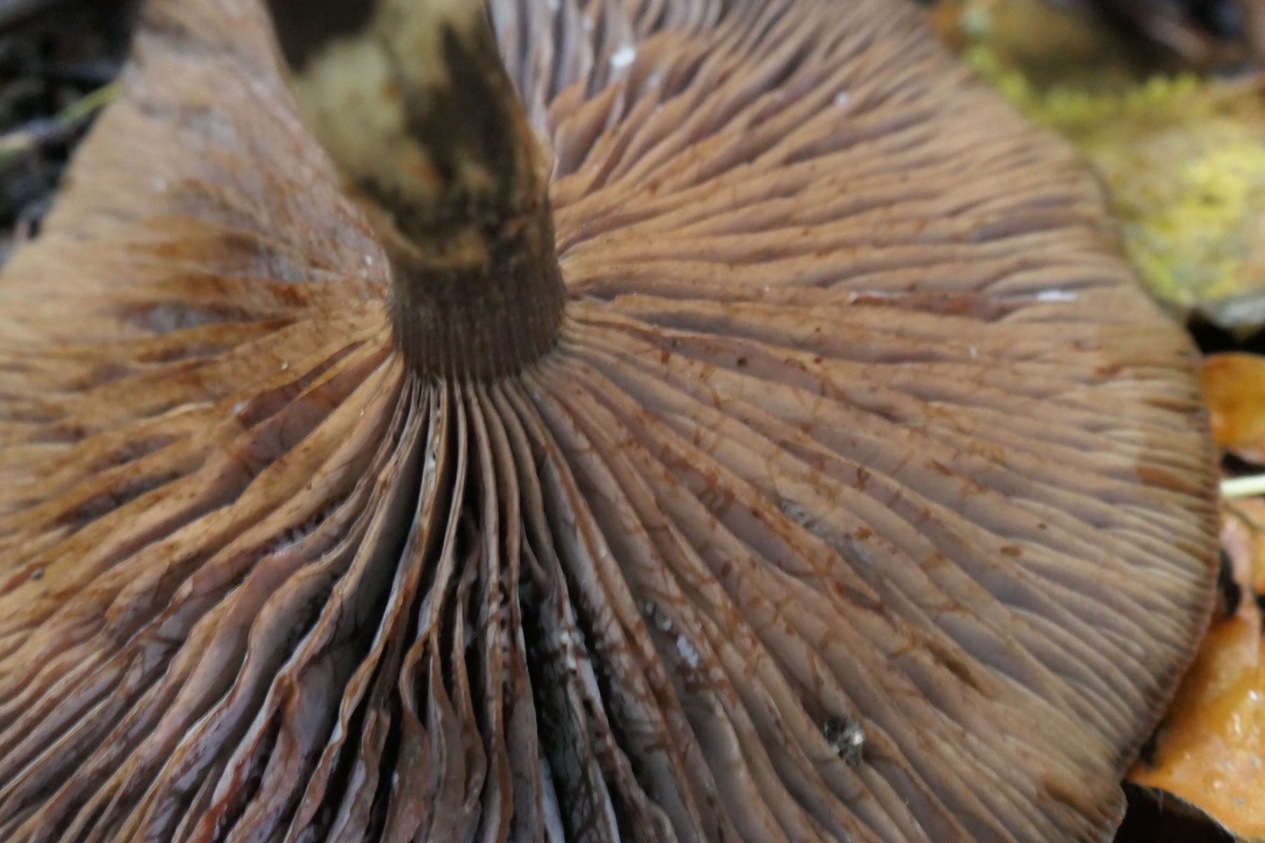 etwas zerstreut wachsend, auffällig geriefter Hutrand;