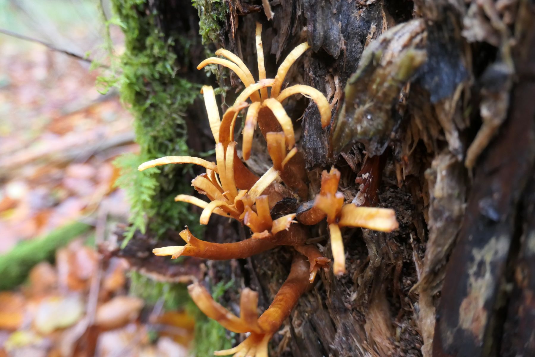 an einem Baumstrunk diese komischen Gebilde, ~ 100 m weiter dann die Auflösung;