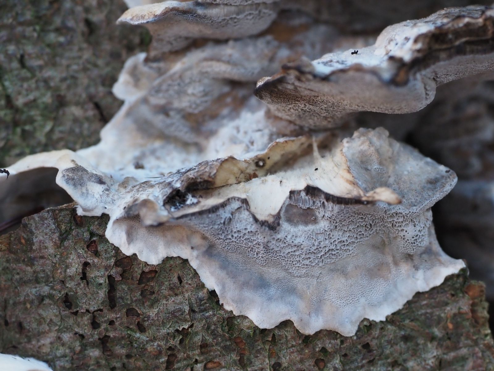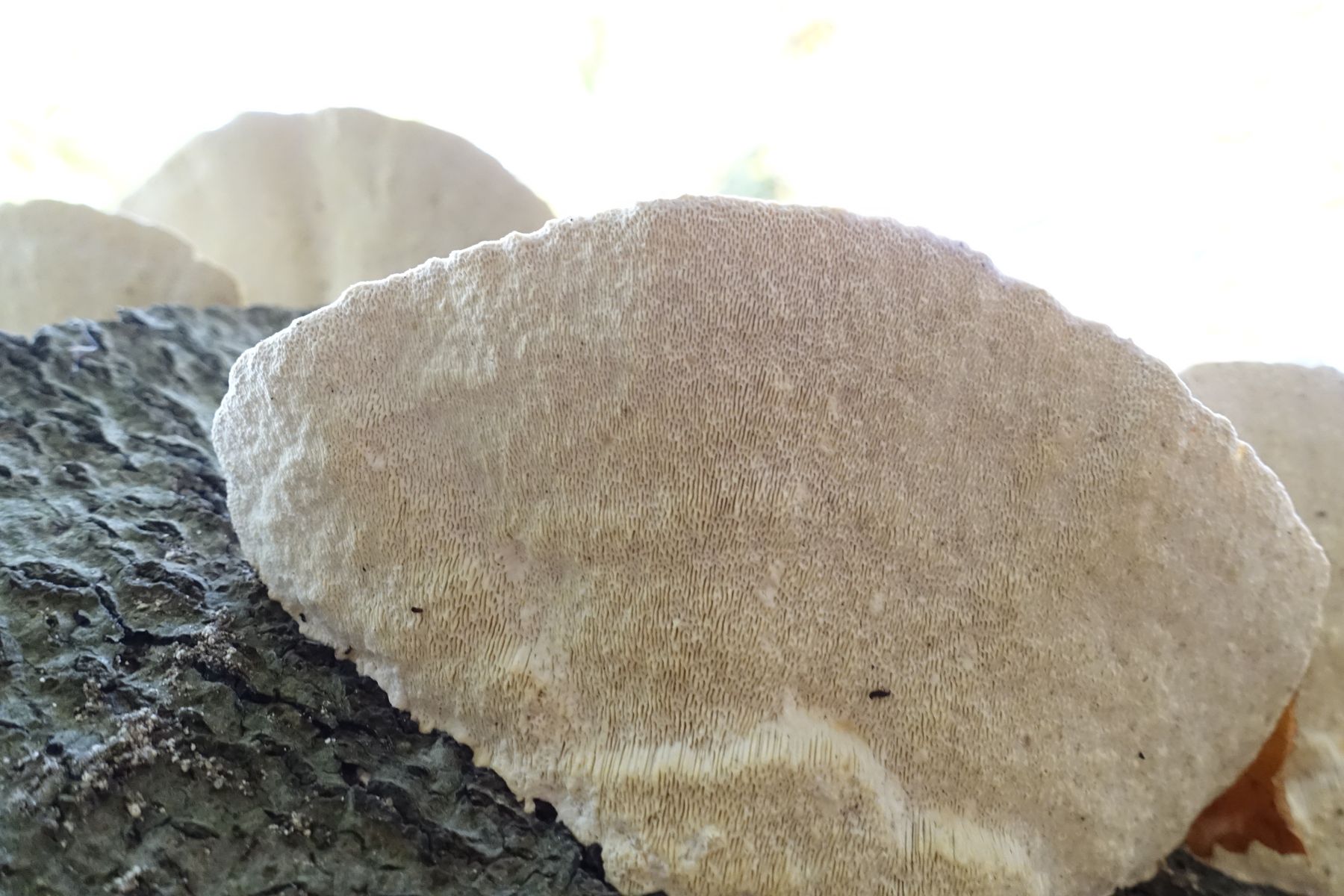 Bild 1: Sehr helle baige-weiße Fruchtkörper, konsolenförmig übereinander und miteinander verbunden