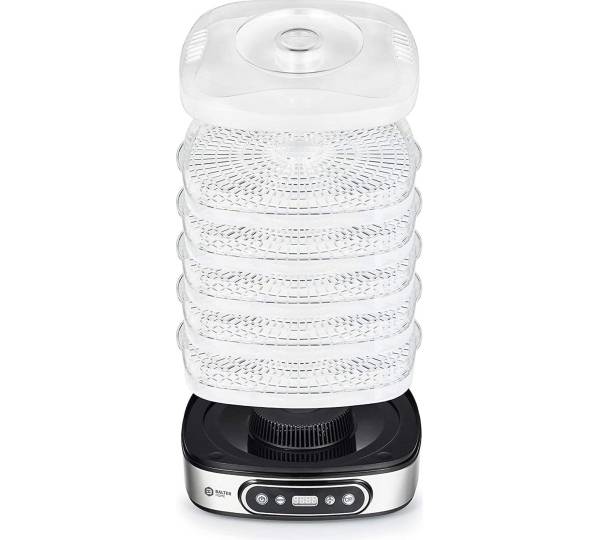 Ich benutze zwei Balter Seco mit digitaler Temperatureinstellung, die ich für runde 42 Euro das Stück bei Amazon gekauft hatte. Sie sind dort allerdings aktuell nicht verfügbar, aber auf Ebay für 43,90 Euro inkl. Versand. Der Lüfter ist oben abgedeckt und die Sporen können nur rundrum auf das Plastik fallen. Das Gerät bläst von unten nach oben, also immer vom Lüfter weg. Bislang habe ich vor allem diverses Obst und auch Steinpilze dort erfolgreich getrocknet. Ich finde die Plastikgitter besser als Edelstahl, was ich zuvor auf einem in die Jahre gekommenen Stöckli testen konnte. Dort klebten die Steinpilze gerne an, was mir beim Plastik nicht passiert ist. Die Plastiksiebe stelle ich auch einfach in die Spülmaschine. Die Dörrfläche ist für mich ausreichend. Das Gerät bläst gut hörbar. Stundenlang daneben sitzen möchte ich nicht und trockne in der Küche, wo ich mich nicht solange aufhalte.