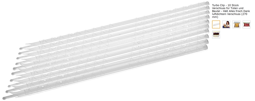 Amazon: Turbo Clip - 10 Stück Verschluss für Tüten und Beutel - Hält Alles frisch Dank luftdichtem Verschluss (270 mm).