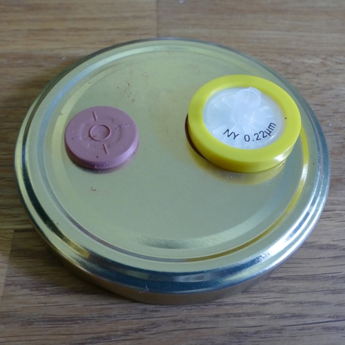 FM ist bei mir nur mit 22 ym Spritzenfilter im Einsatz. Habe heute 10 neue Honiggläser mit Metalldeckeln damit ausgestattet. In die bekomme ich komfortabel 250ml Nährlösung.