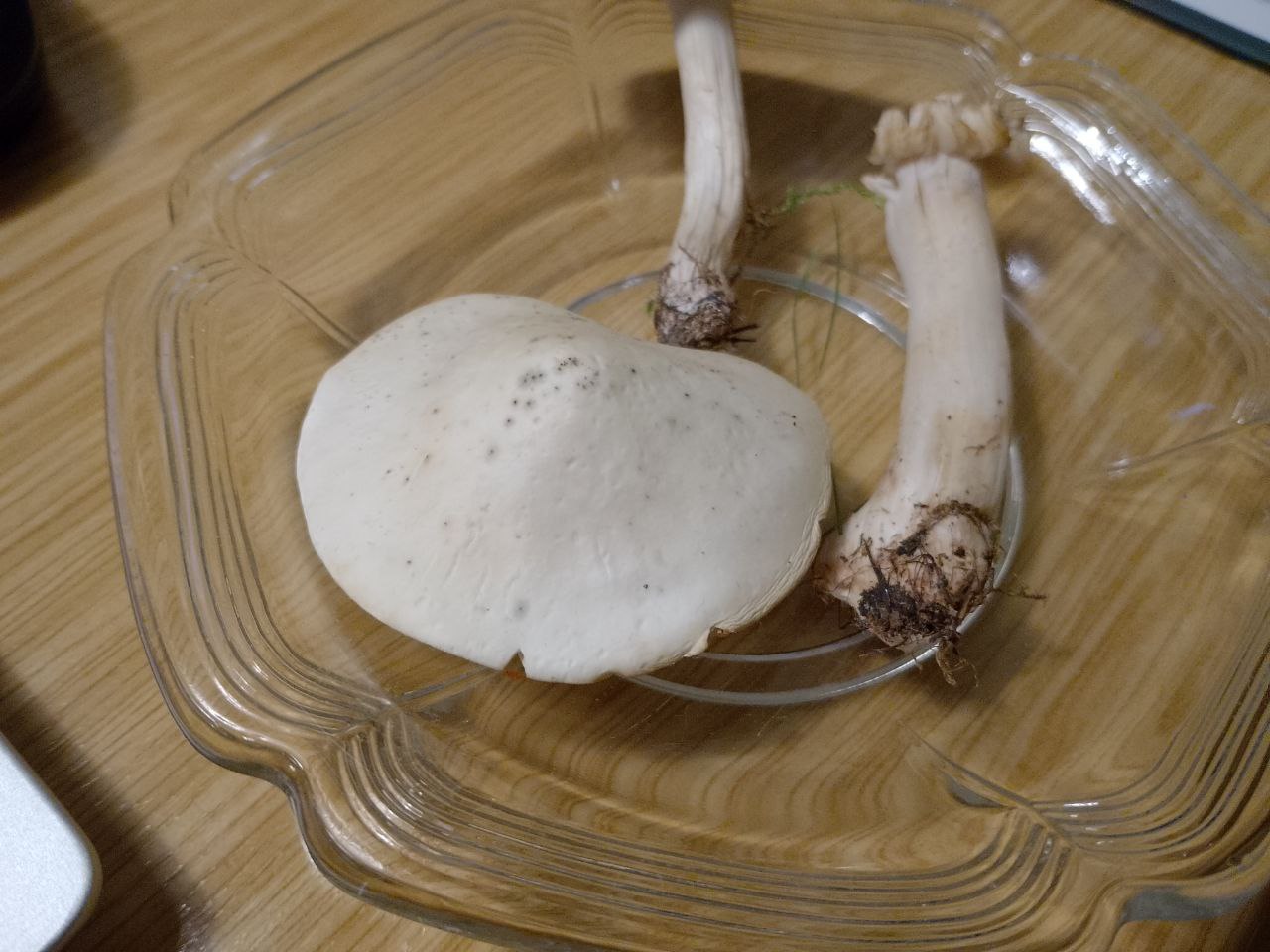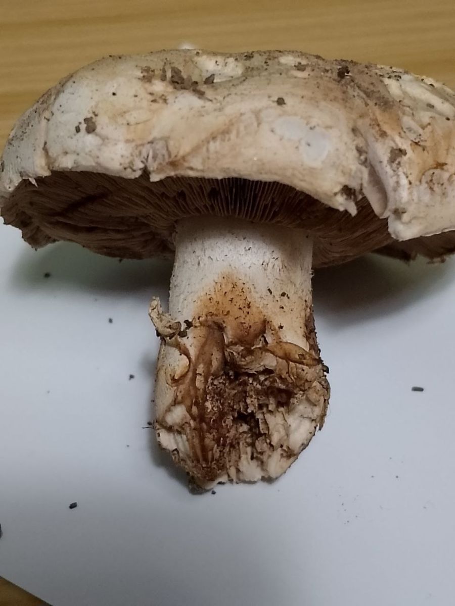 Dass der Stiel nach unten hin spitz wird konnte ich nicht sehen, wahrscheinlich habe ich ihn zu sehr rausgerupft obwohl ich eigentlich vorsichtig war und ja, trocken ist der Pilz. Und die Beschreibung passt sonst natürlich auch, der Pilz wuchs direkt in unserer Stadt neben einem kleinen Baumbeet umgeben von Asphalt.