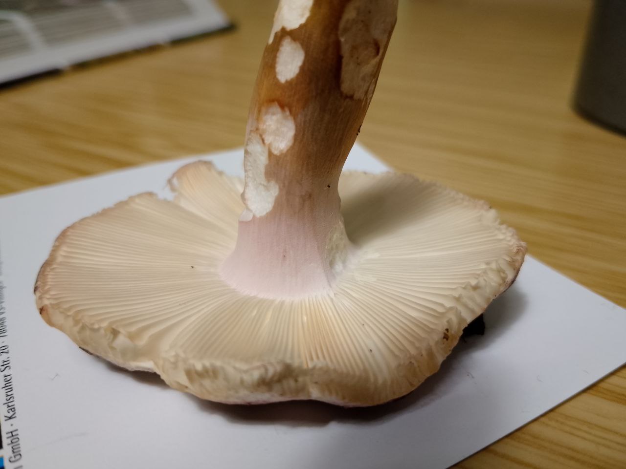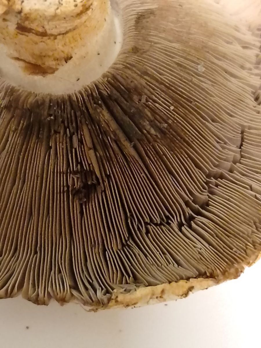 Die Lamellen sind cremefarben mit Zwischenlamellen und ich sehe eda ziemlich deutlich einen Burggraben.