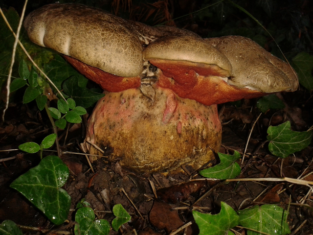 die Hutfarbe auf dem Bild läßt deinen Rückschluß natürlich zu, aber ist auch nur ein Bild. Rote Poren, ohne Stielnetz, ohne roten Röhrenboden und mit rübenroter Stielspitze ist für mich B.queletii. Die Hutfarbe variiert beim dem auch mal ganz schön.