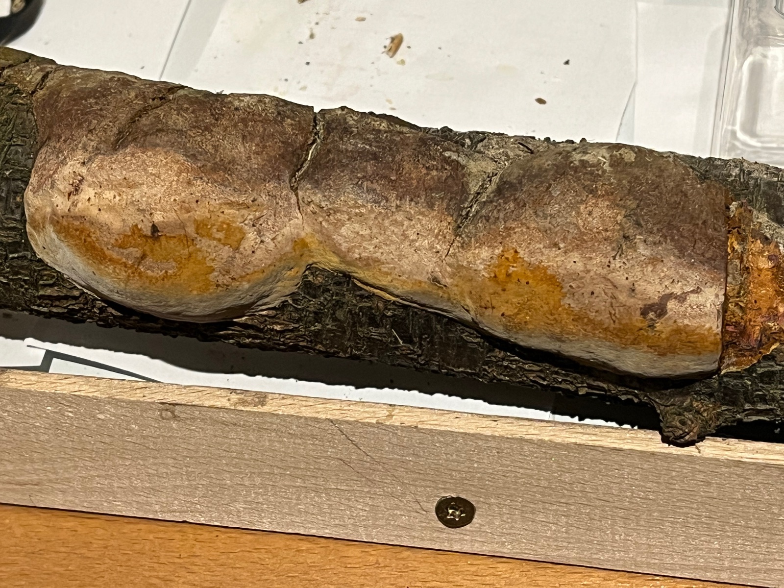 Die habe ich gestern auf einem morschen Wilkirschenast gefunden und komme einfach nicht weiter. Da wäre ich für Hilfe dankbar. Der Ast hat etwa 5cm Durchmesser.