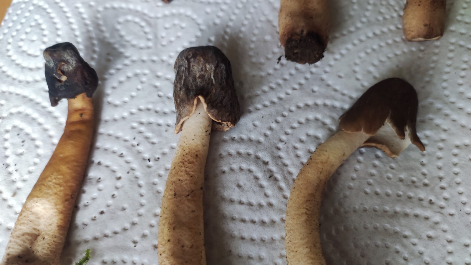 ich war gestern abend in Würzburg am Hubland (etwas erhöhte Hanglage, Boden sehr kalkreich) etwas im "Gebüsch" unterwegs, hauptsächlich um nach Speisemorcheln zu schauen. Dabei sind mir in einem jungen, dichten Ahornwäldchen (auch etwas Hasel dabei) dann diese, vermutlich, Schlauchpilze aufgefallen. Im Thema Frühlingpilze bin ich noch recht unbewandert, aber nach etwas Recherche bzw. nochmal genauer nachschauen würde ich sagen, handelt es sich mit großer Wahrscheinlichkeit entweder um böhmische Verpeln oder Fingerhut-Verpeln. Nun ist es so, dass dort einige ältere, höhere Exemplare mit sehr dunklem, schon etwas vertrocknetem Hut standen, und daneben etliche jüngere, deutlich hellere Exemplare mit kürzerem Stiel. Der Hut ist bei den jüngeren, kleineren ziemlich glatt und bei den Älteren könnte die leichte Runzelung auch vom Alter kommen.