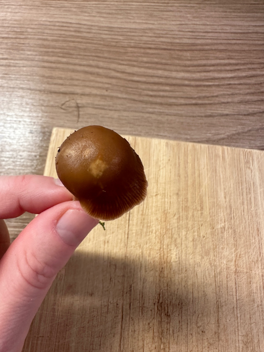 Hatte mir einen Pilz für weitere Fotos und zur Bestimmung mit nach Hause genommen. Der wurde selbstverständlich auch nicht gekostet.