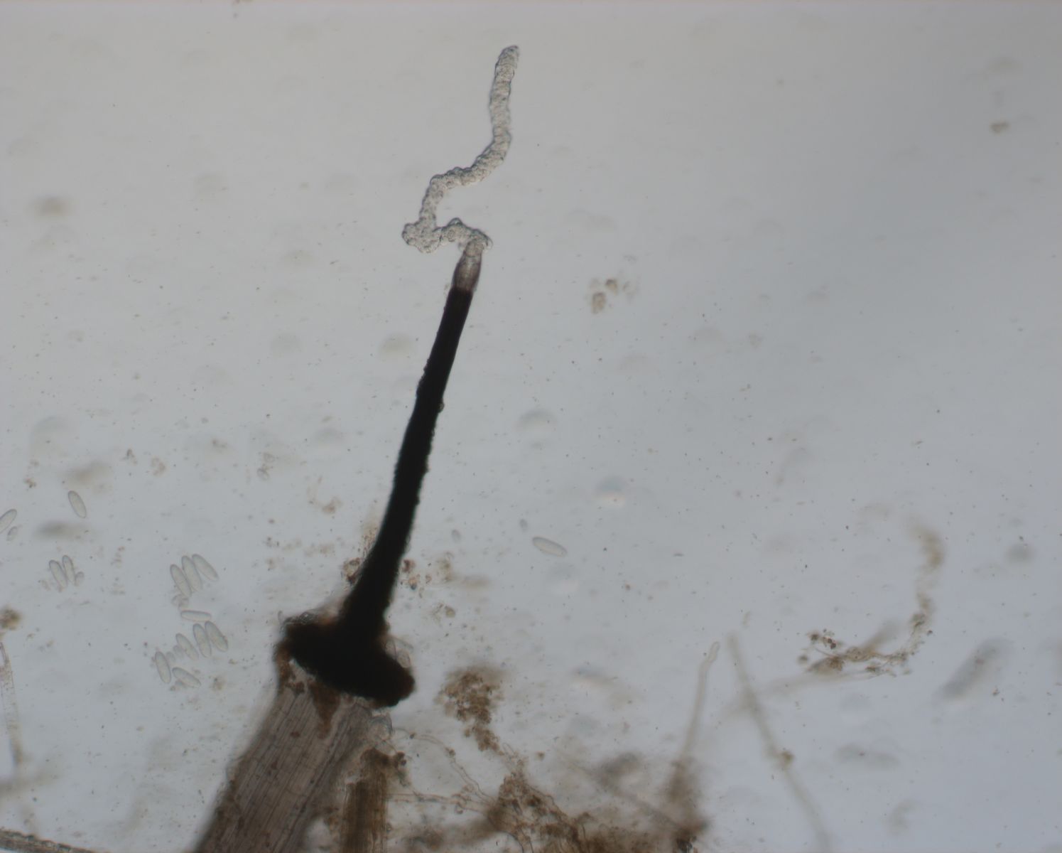 Bitte um Bestimmungshilfe bei Pilzen auf Rinderdung Pterocarya 18. Mai 2023 Hallo allerseits,diese Dungpilze wurden auf Auerochsendung vom Lainzer Tiergarten gefunden. Ich bin mir nicht sicher was sie sind.Sie sind ca 1 mm lang und 100 µm breit.Bild der Pilze: