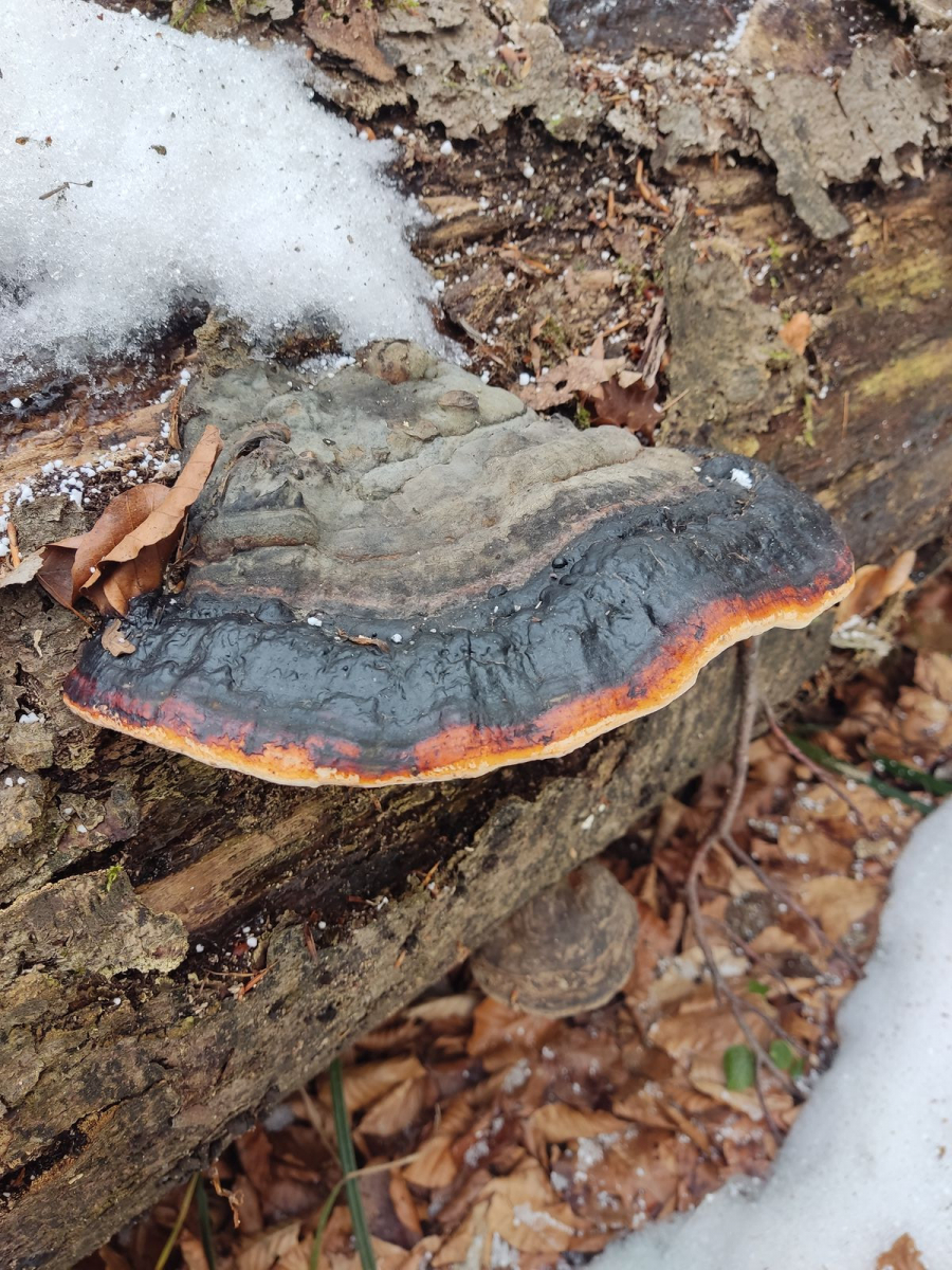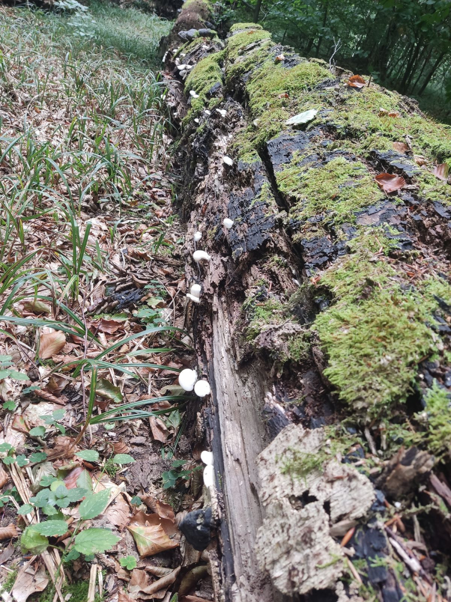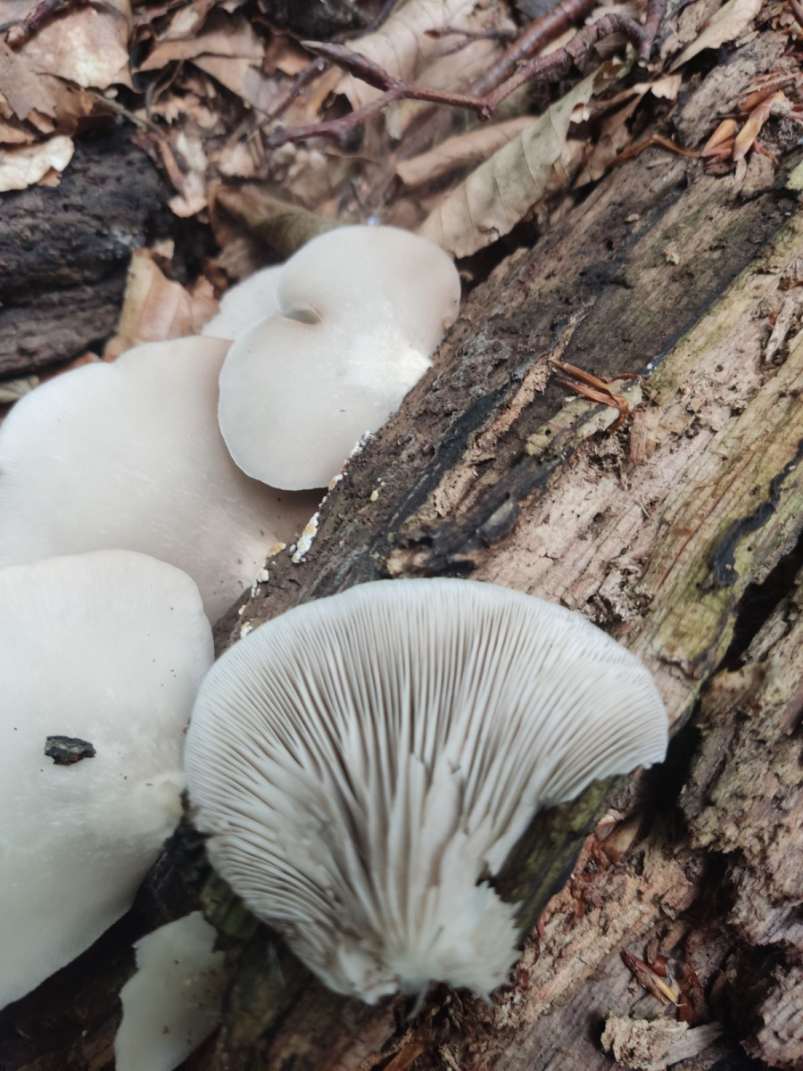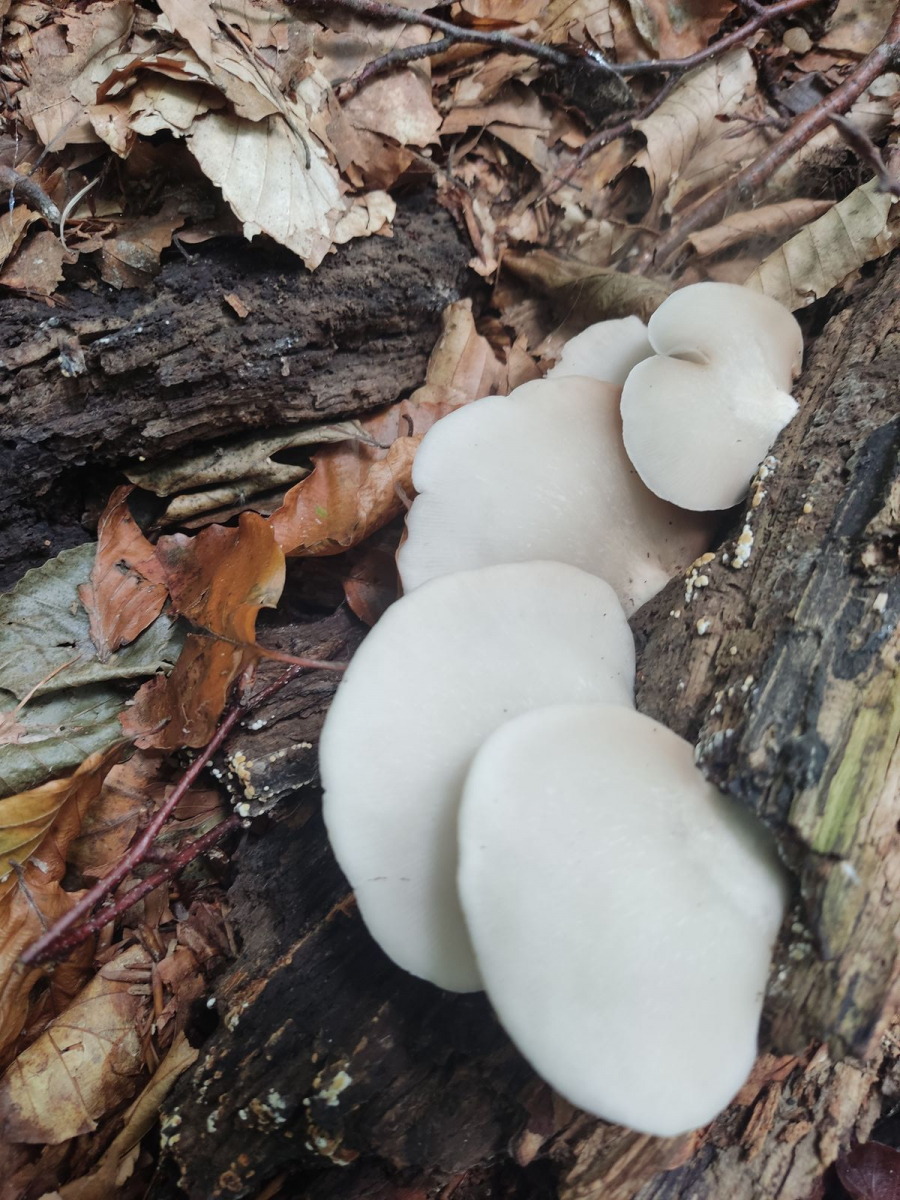 Liebe Community! Habe im Laubwald auf einem liegenden Buchenstamm, den ich seit zwei Jahren besuche, folgende Pilze gefunden: