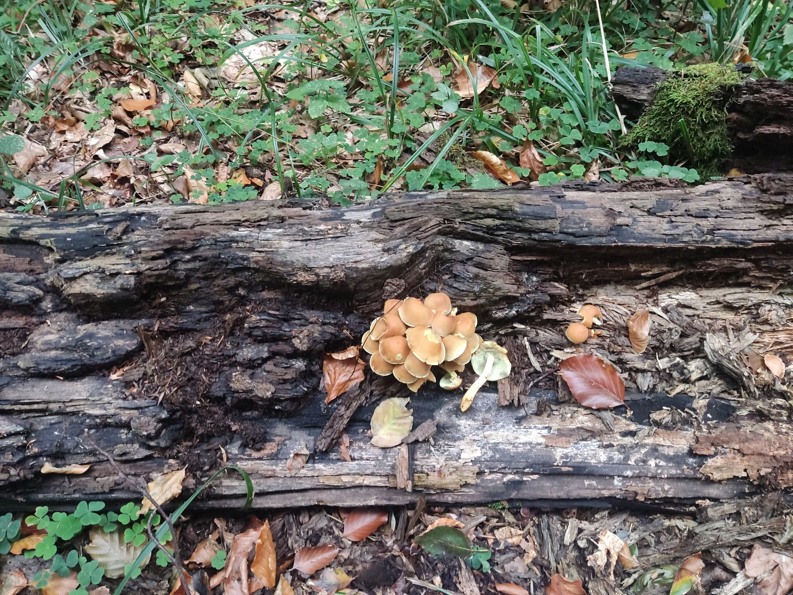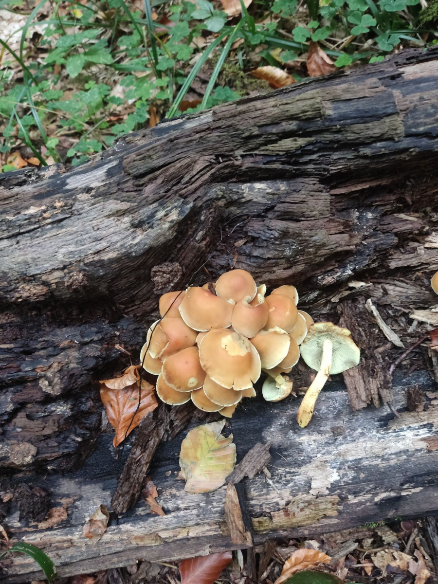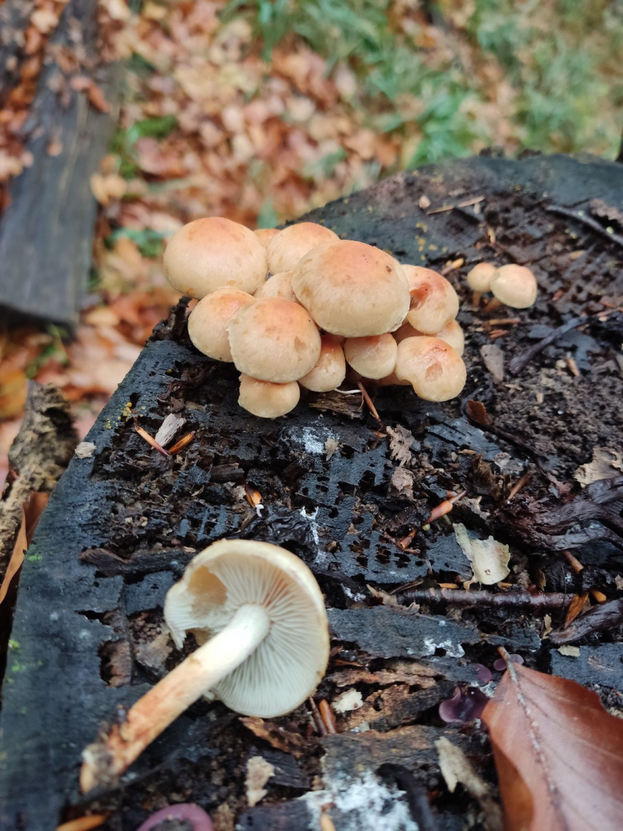 Liebe Community! Habe im Laubwald auf einem liegenden Buchenstamm, den ich seit zwei Jahren besuche, folgende Pilze gefunden: