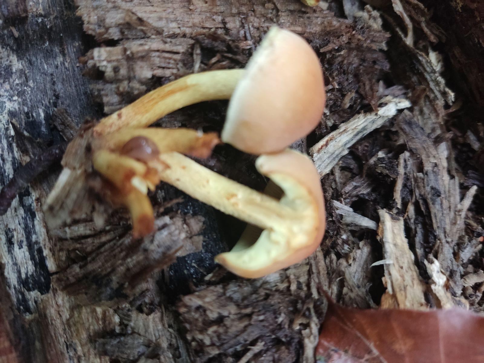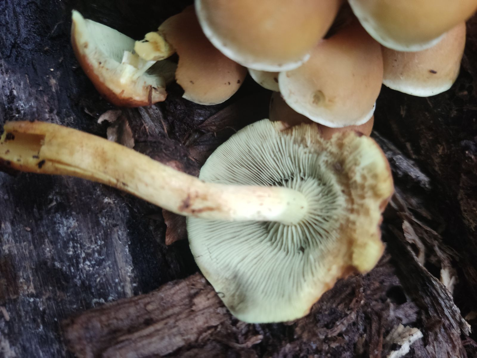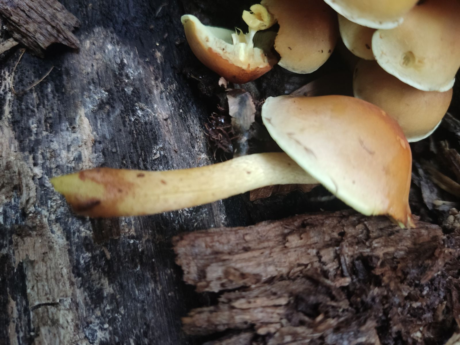 Heute hat eine Freundin Fotos geschickt und mich gefragt, ob das ein Steinpilz ist. Ihre tschechischen Arbeiter waren im Wald, die Farbe der Poren hat sie misstrauisch gemacht. Hab sie dann gebeten, die Pilze durchzuschneiden, alle olivgrünen und weißen haben sich nicht verfärbt, die mit den gelben Poren wurden grau - ich kenn das so nicht. Weiß weder Habitat noch hab ich andere Fotos. Danke für jeden Tip!