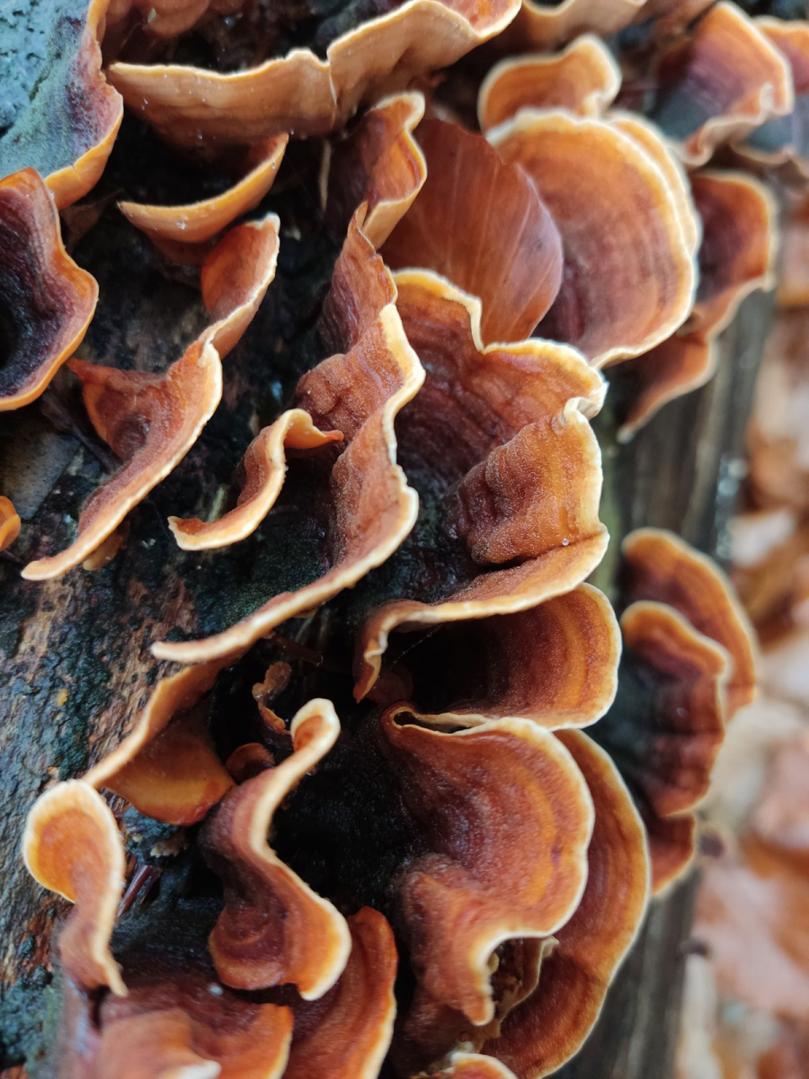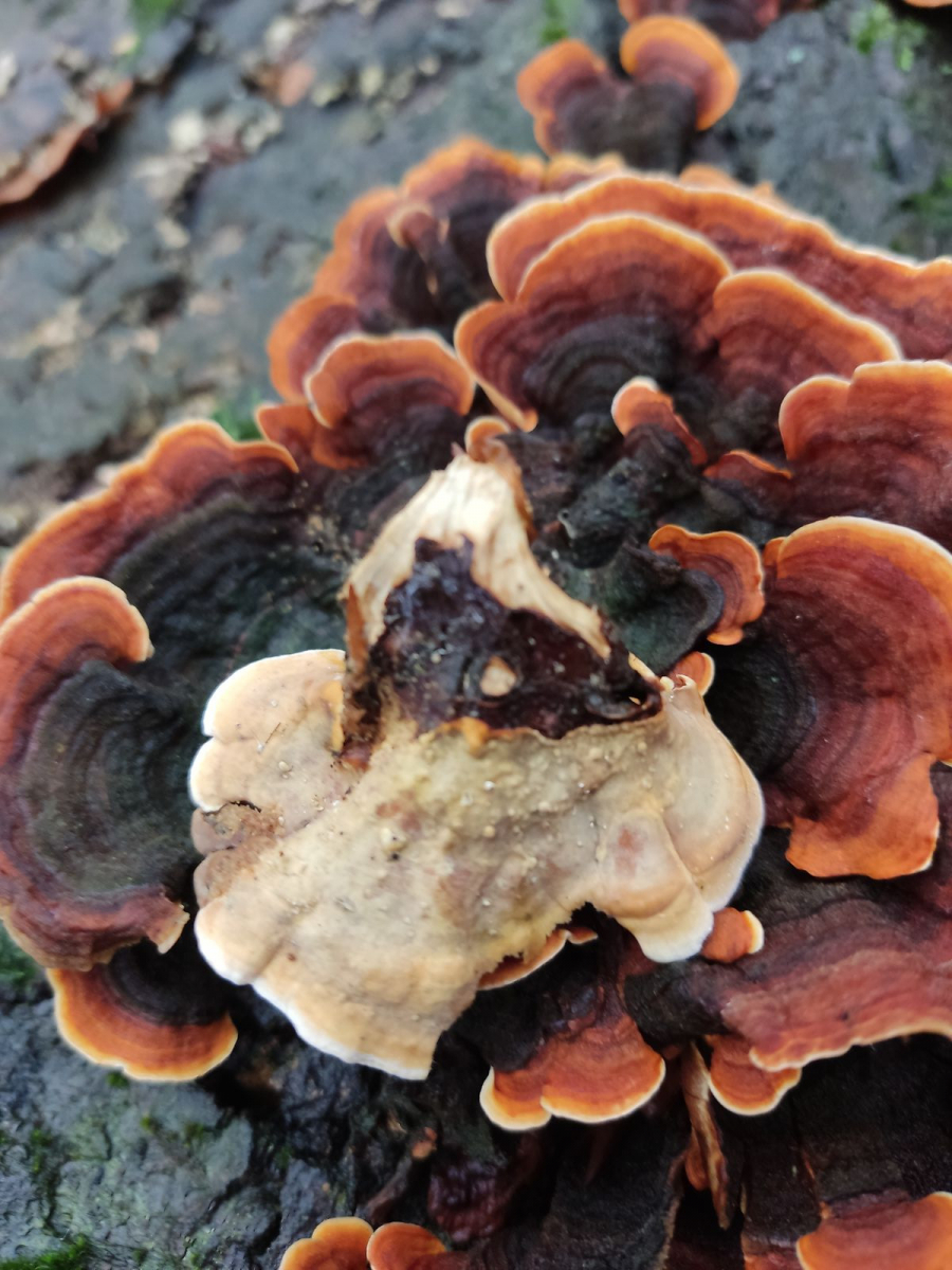 Dazu samtige Schichtpilze und eine Buckeltramete?