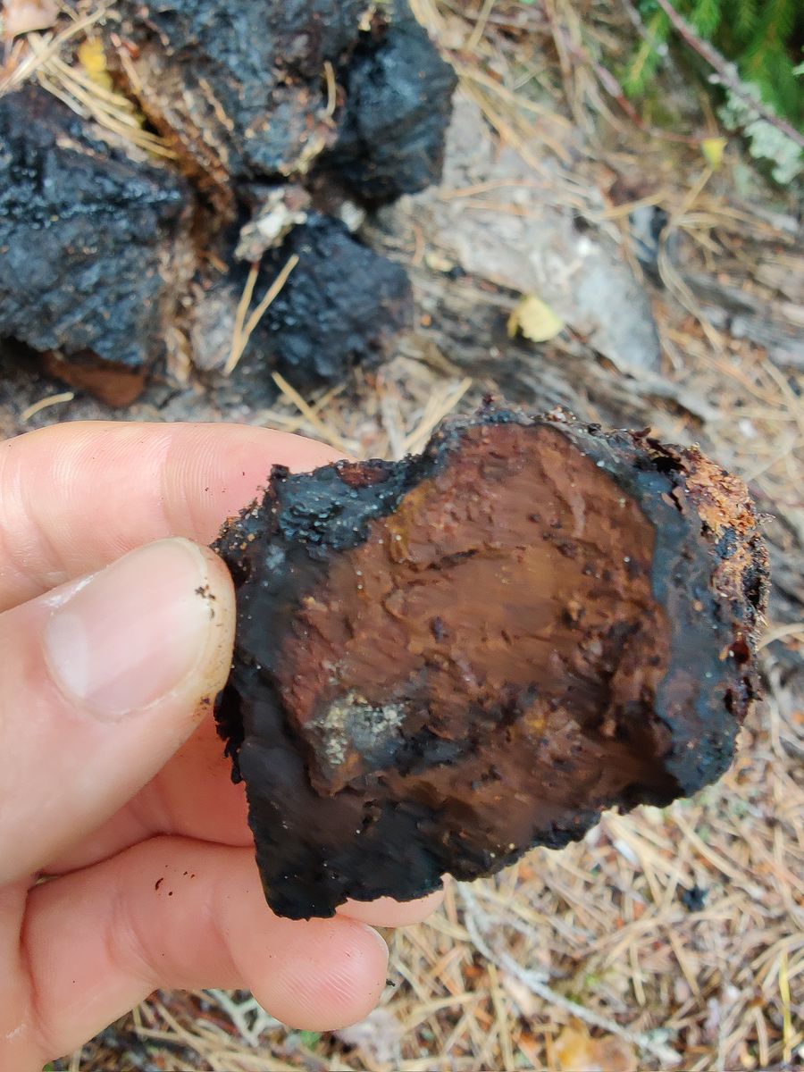 ich bin über's Internet auf den Chaga gestoßen und habe bei meiner heutigen Pilzsuche auch mal nach diesem geschaut.