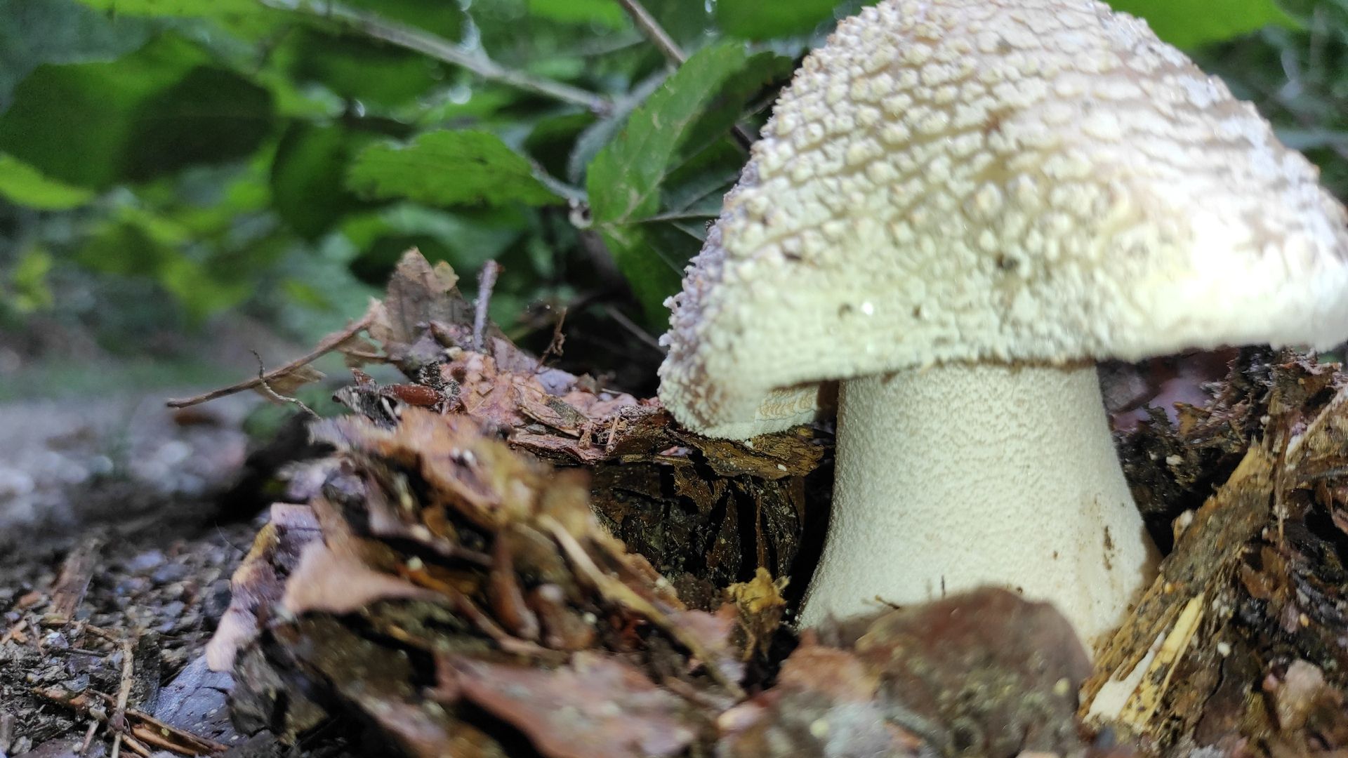 Danke zusammen! Das ist ein junger Grauer Wulstling oder eher ein Perlpilz(?), bei dem die Lamellen noch mit Velum bedeckt sind. habe den Pilz leider im Wald gelassen. Hatte das mit dem Velum nicht bedacht.