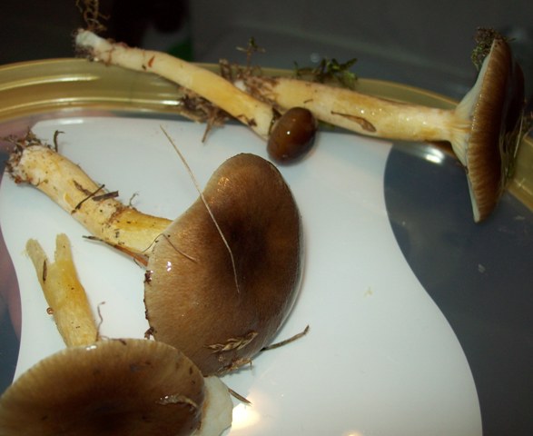 Man kann aber auch unseril züchten, indem man versucht, einen Pilz zu klonen. Das funktioniert ganz gut mit Austernpilzen. Man nimmt einen Pilz aus dem Laden, bricht oder reißt ihn auseinander und versucht ein Stück vom inneren des Hutes oder Stiels zu entnehmen, welches man dann auf ein Stück feuchter Wellpappe legt. Das wird dann bei Zimmertemperatur im Dunklen gelagert und nach ein paar Tagen sollte man weißes Mycel um das Pilzstück erkennen können. Das kann man dann nach und nach mit ganz wenig aufgeweichten, aber keinesfalls nassen, Strohpellets füttern.