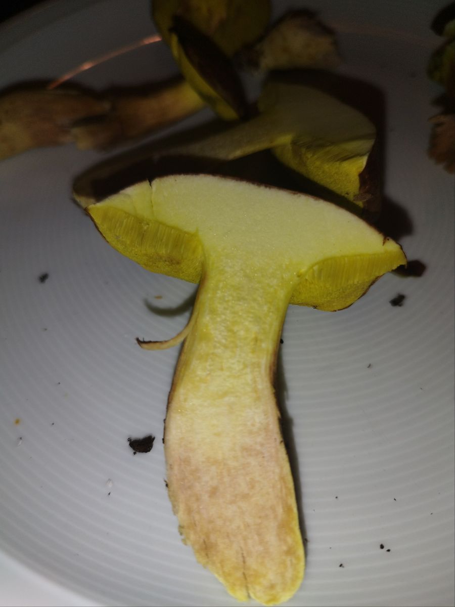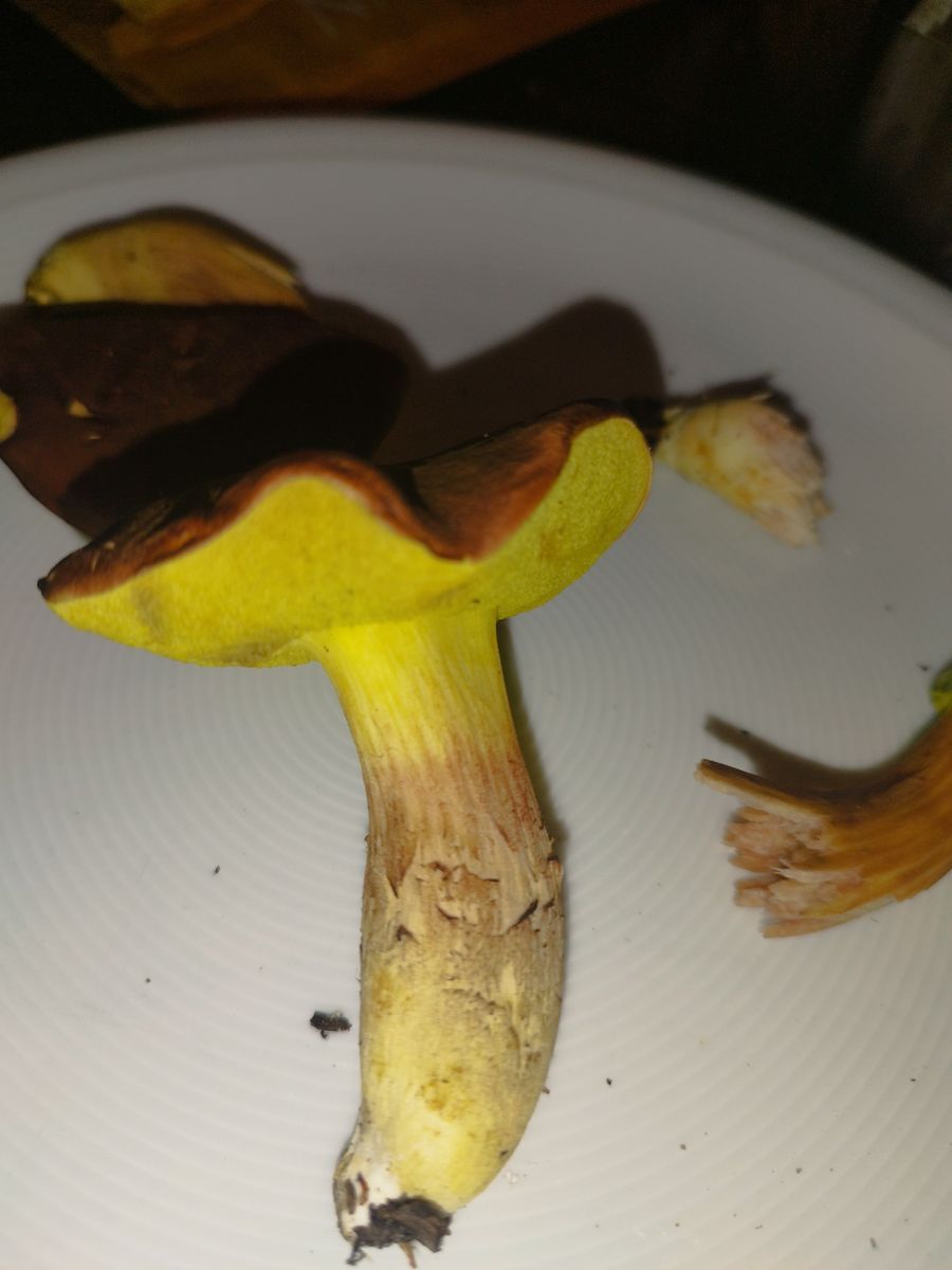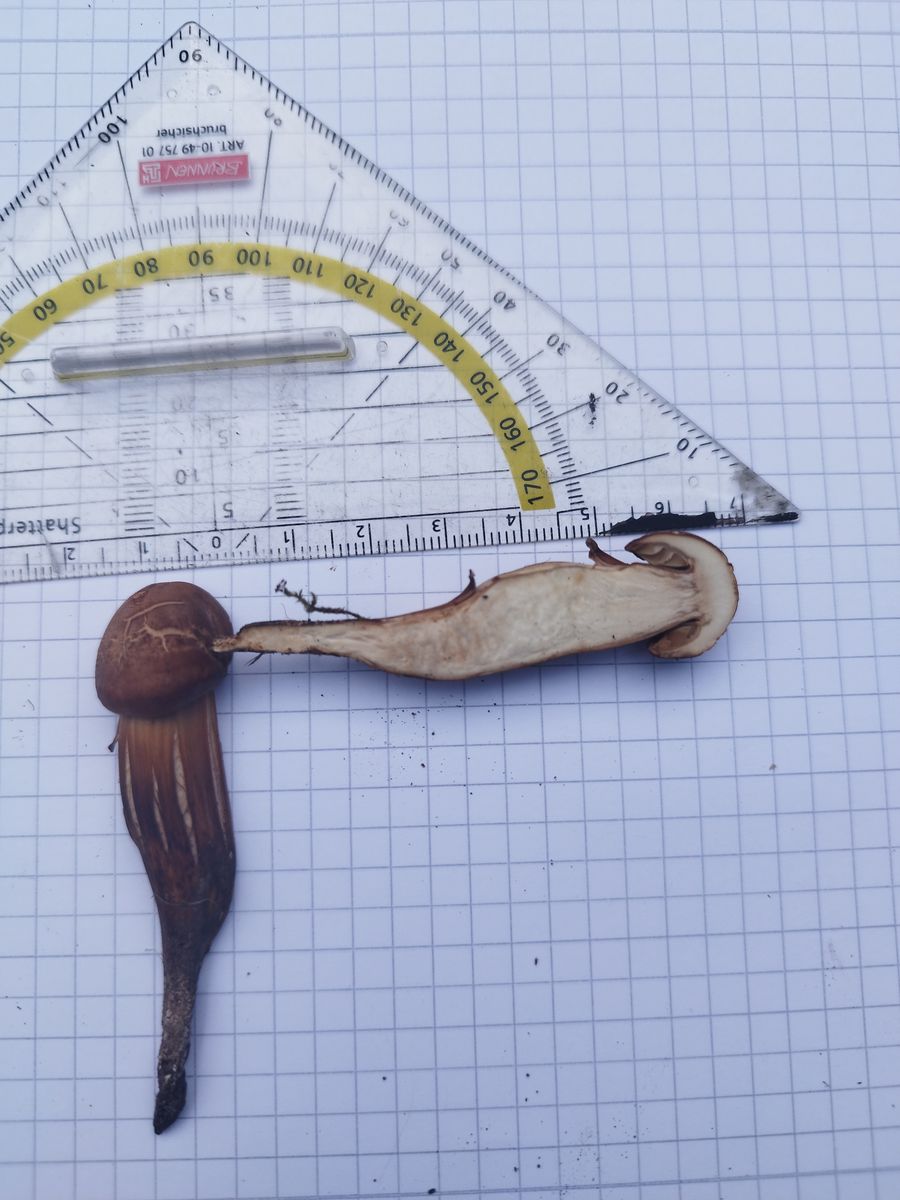Unter dem Braunen ist eine Schwammartige Struktur zu erkennen, wie ich sie von Morcheln kenne.