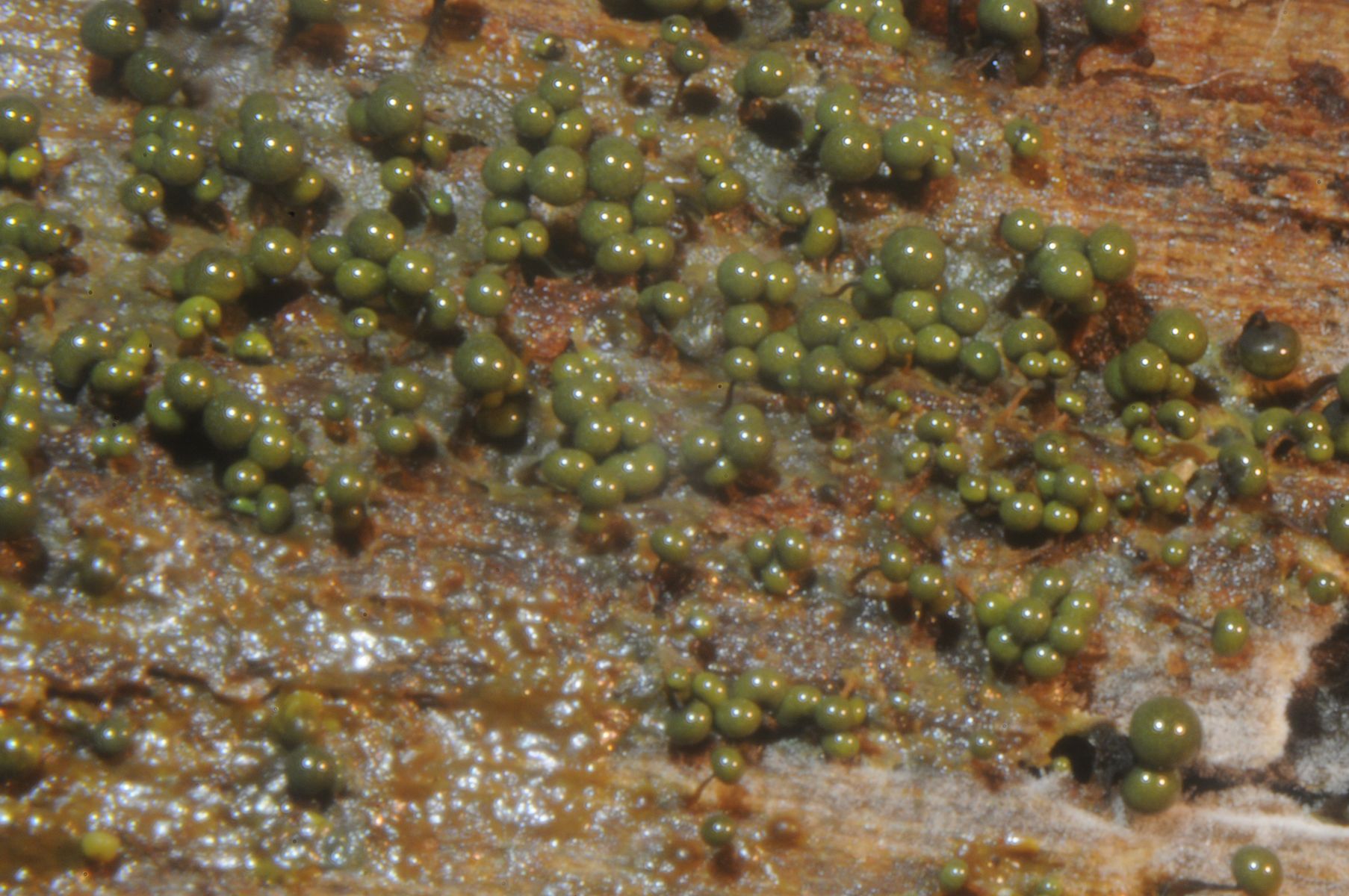 In der Nähe des Berliner Müggelsees fanden Mitglieder der PABB am 1.7. 2023 einen grünlichen Schleim, der sich bis ich zu Hause war doch schon etwas entwickelt hatte
