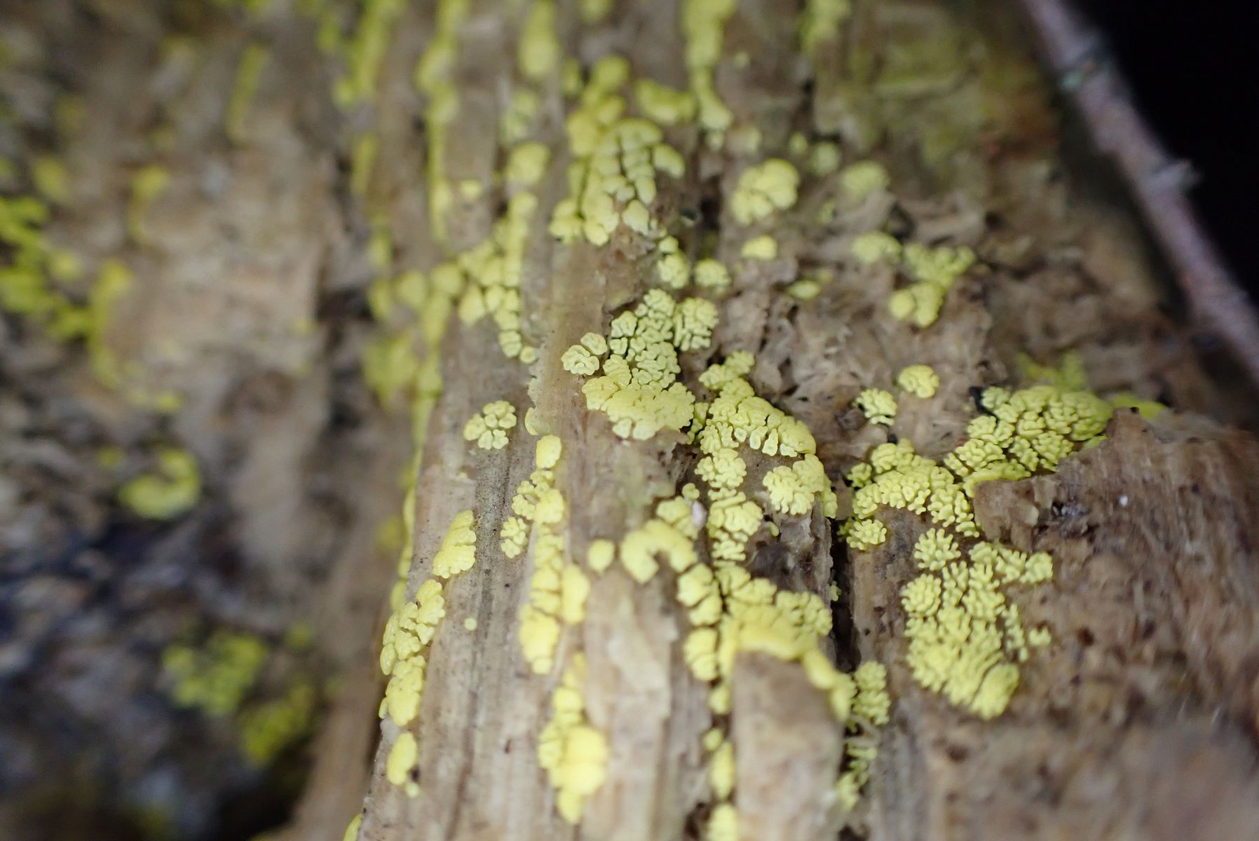auf einem liegenden, entrindeten, schon etwas morschen Fagus-Stamm habe ich diesen Schleimer gefunden.
