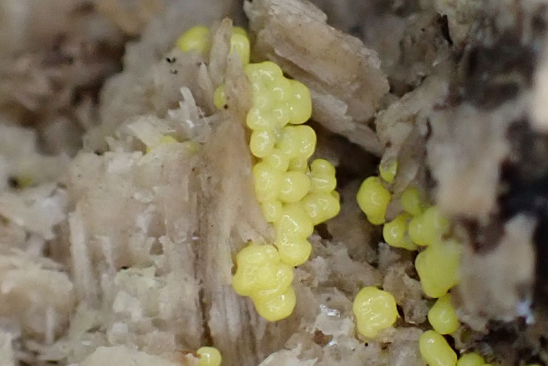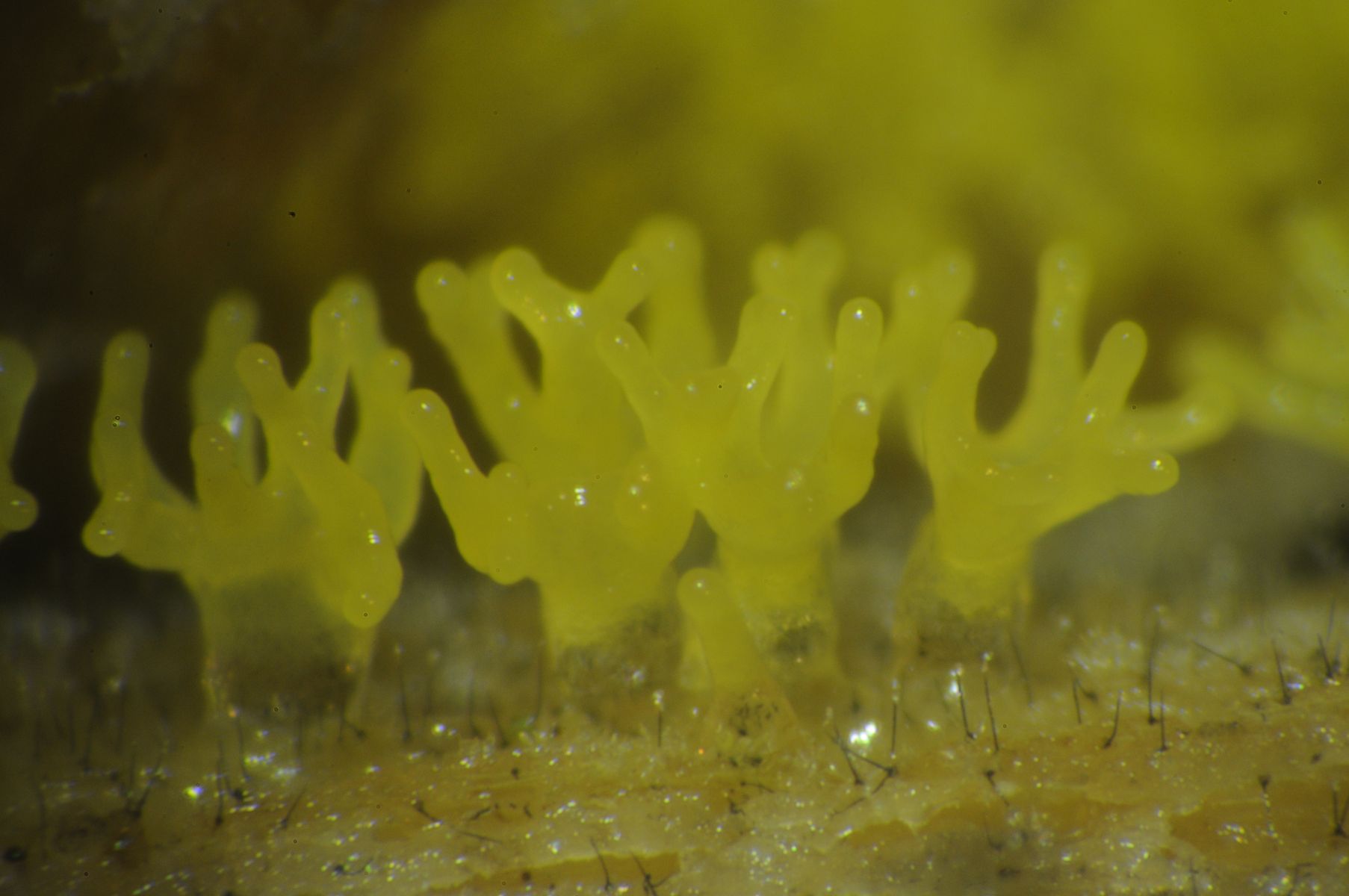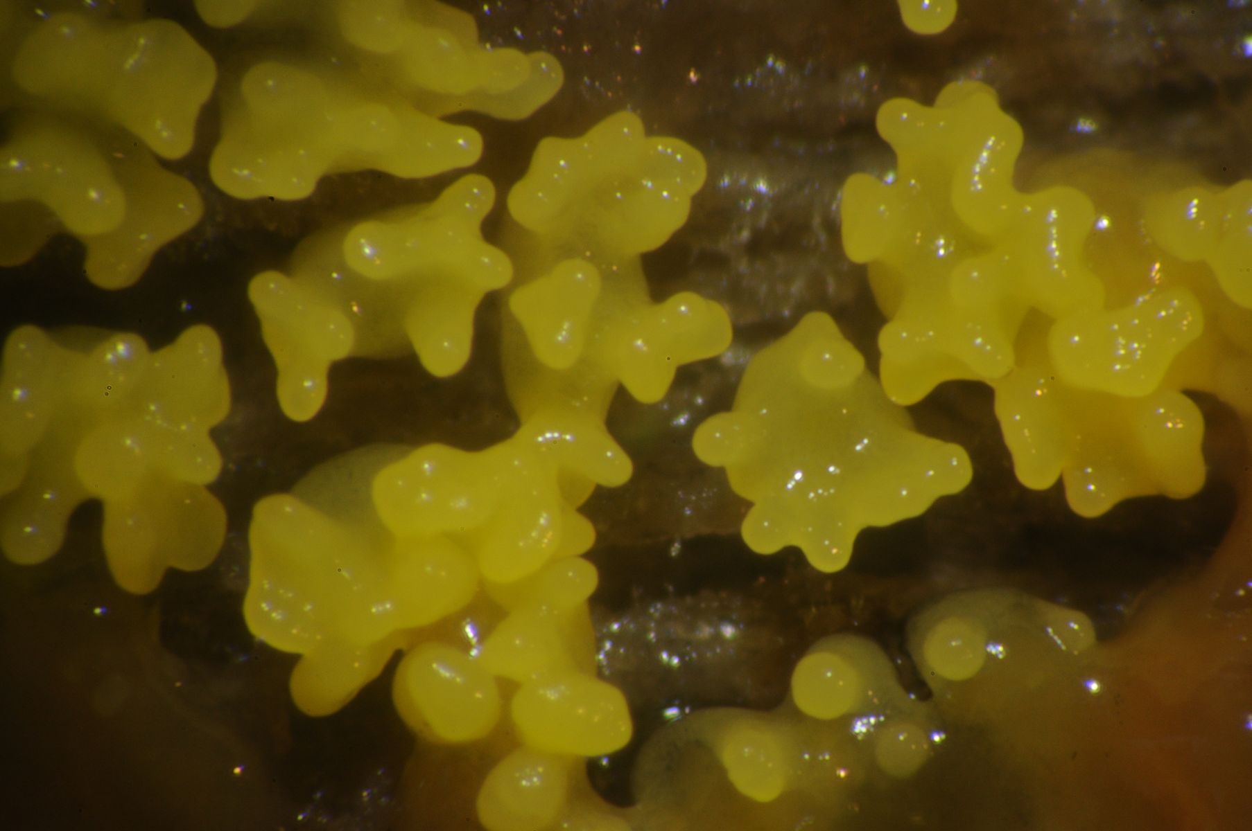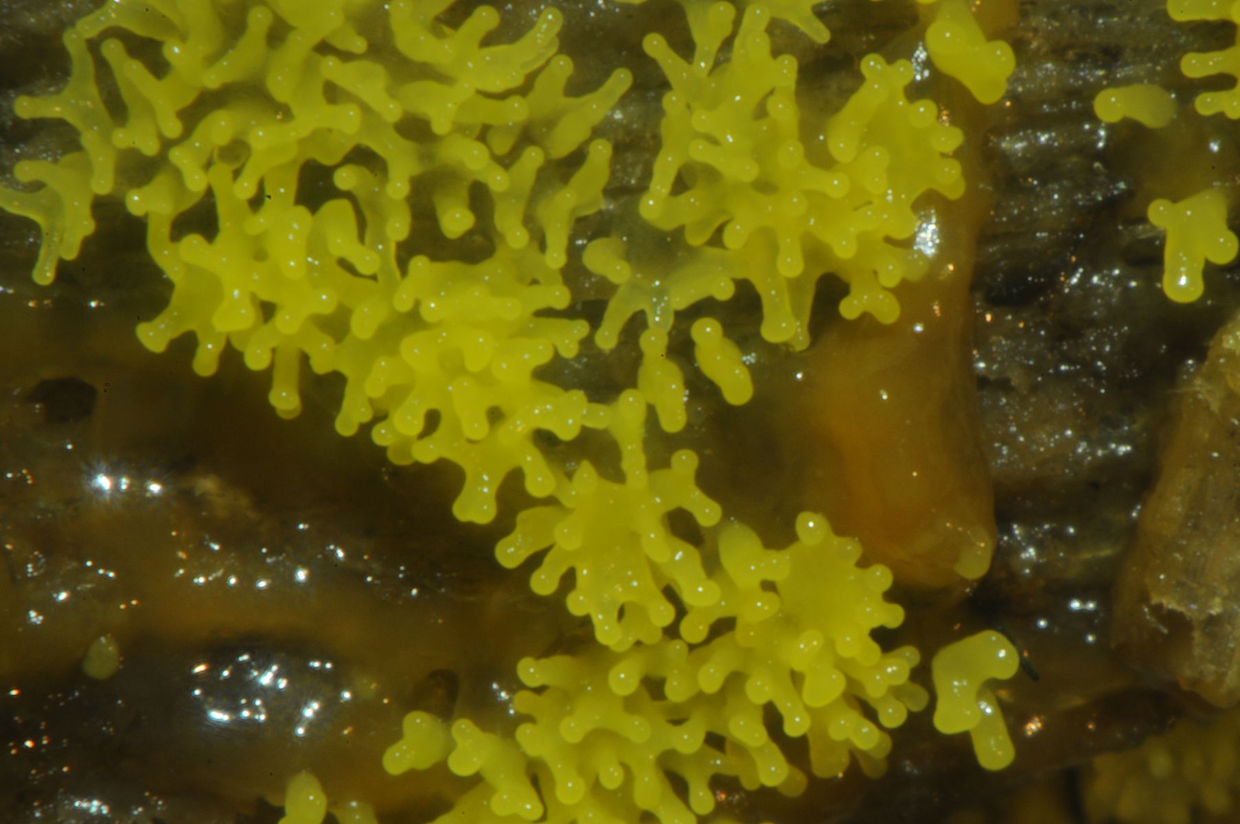 dieser Schleimer ist zwar häufig, aber in gelb und in Entwicklung sieht man ihn nicht so oft. Deshalb möchte ich ihn hier zeigen. Gefunden habe ich ihn im Inneren eines ausgehöhlten Ulmenstammes. Die Entwicklung verlief innerhalb eines Tages in einer Petrischale auf feuchtem Papier.