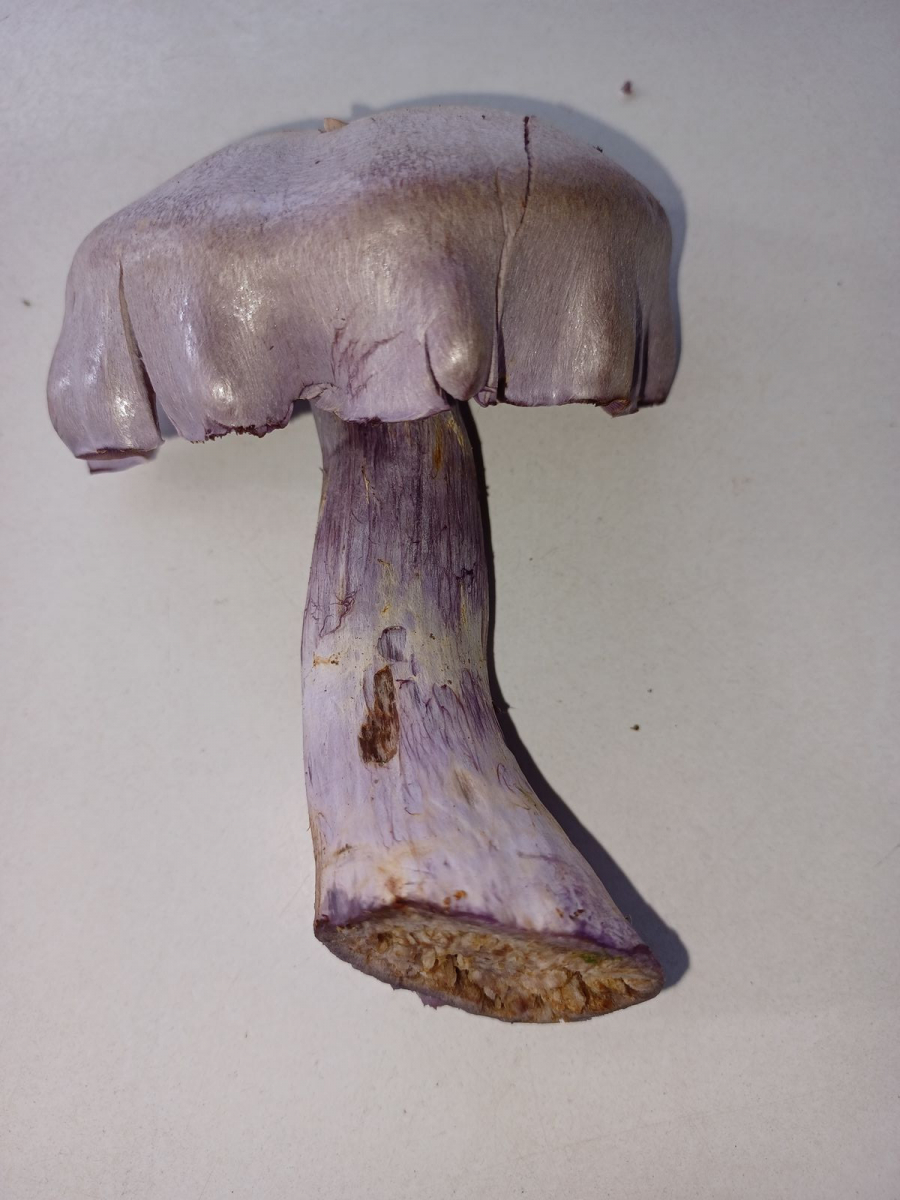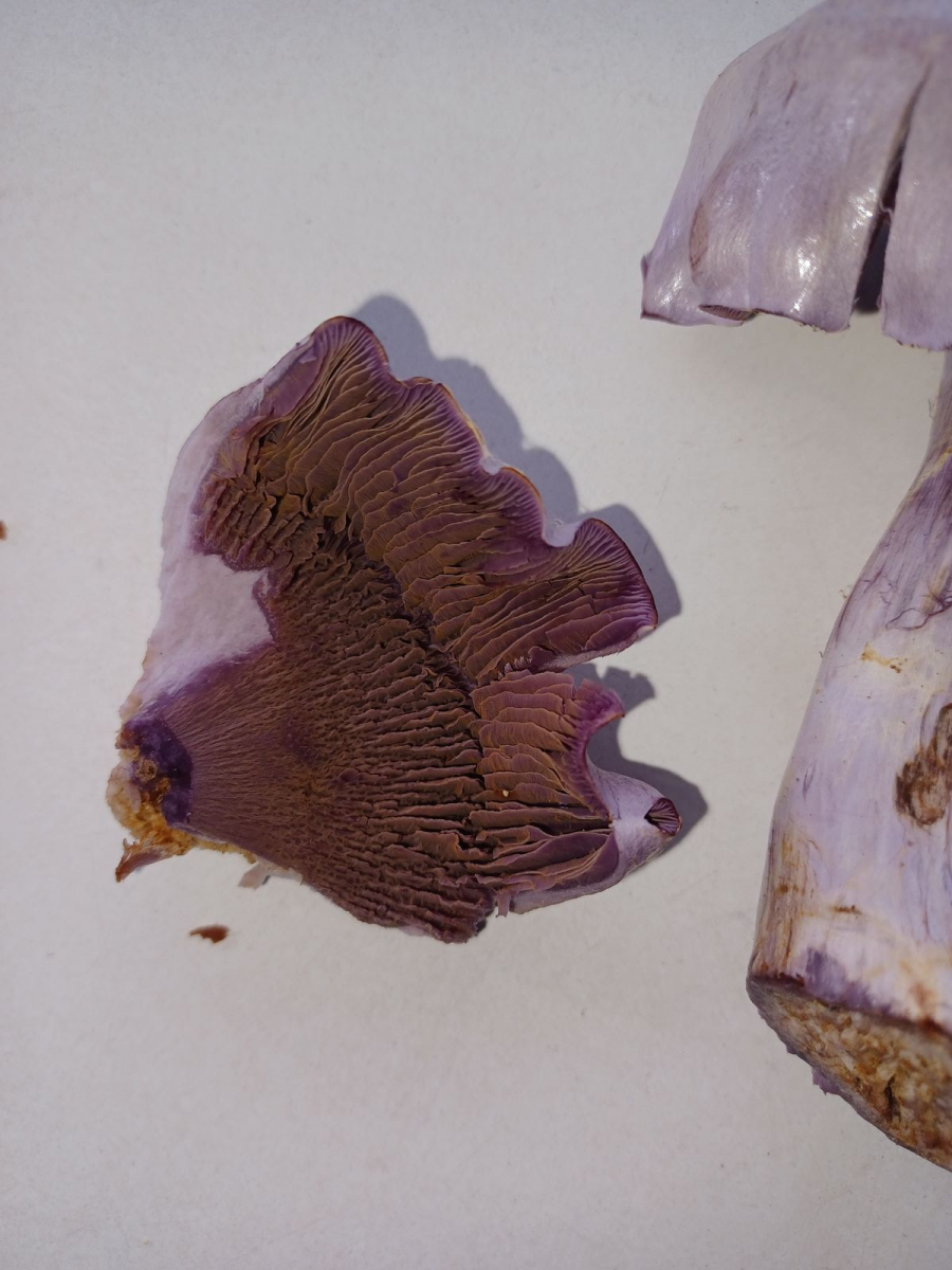 Der helle Pilz war ganz hellgrau bzw. leicht fliederfarben und sah fast schon perlmuttartig aus.