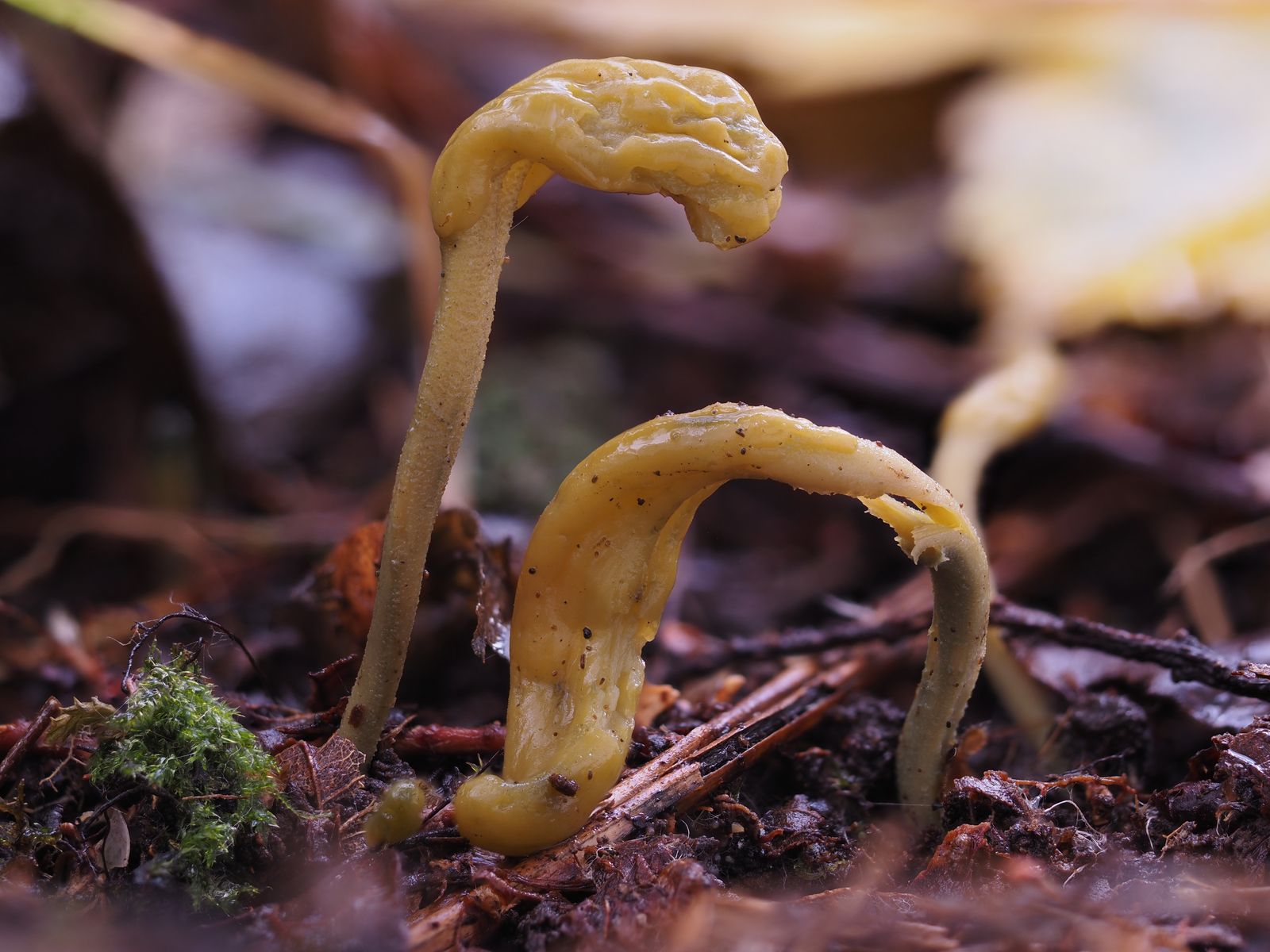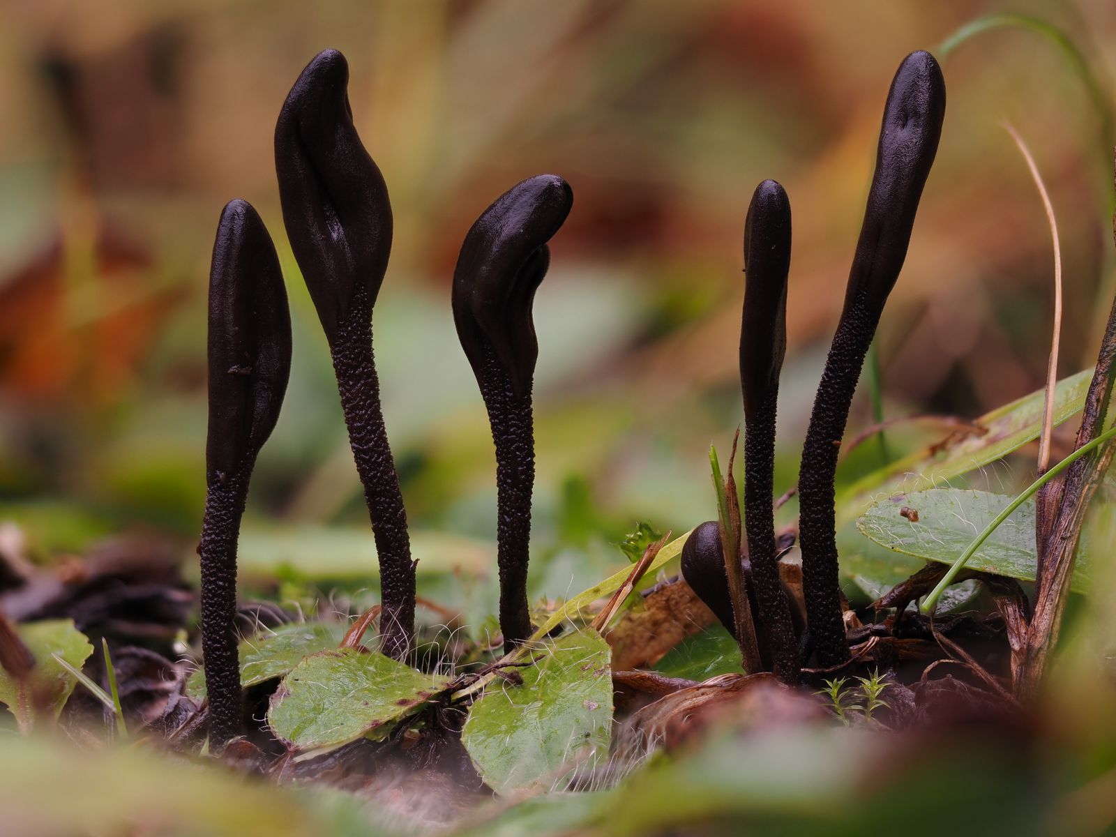 Schon von Corne wurden meine kleinen pinken Holzfähnchen entdeckt, die unter anderem eine Gruppe Erdzungen markierten. Dabei konnte ich mich bei der Bestimmung nicht zwischen Geoglossum fallax und G. starbaeckii entscheiden: