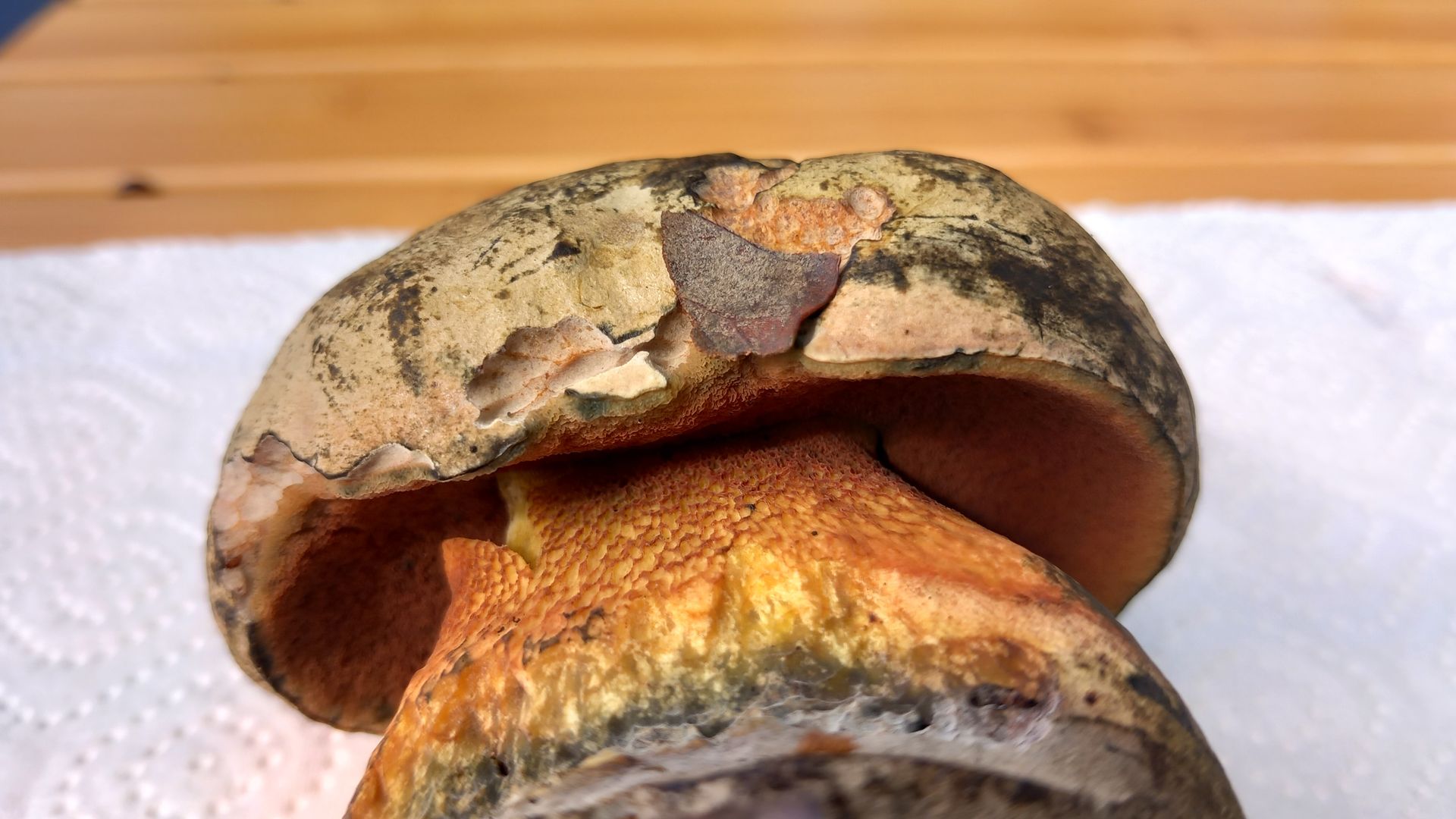 danke dir für deine Einschätzung. Der Hut ist in der Tat etwas filzig. Ein Foto der noch einmal angeschnittenen Stielbasis kommt, da ist schon einiges rot.