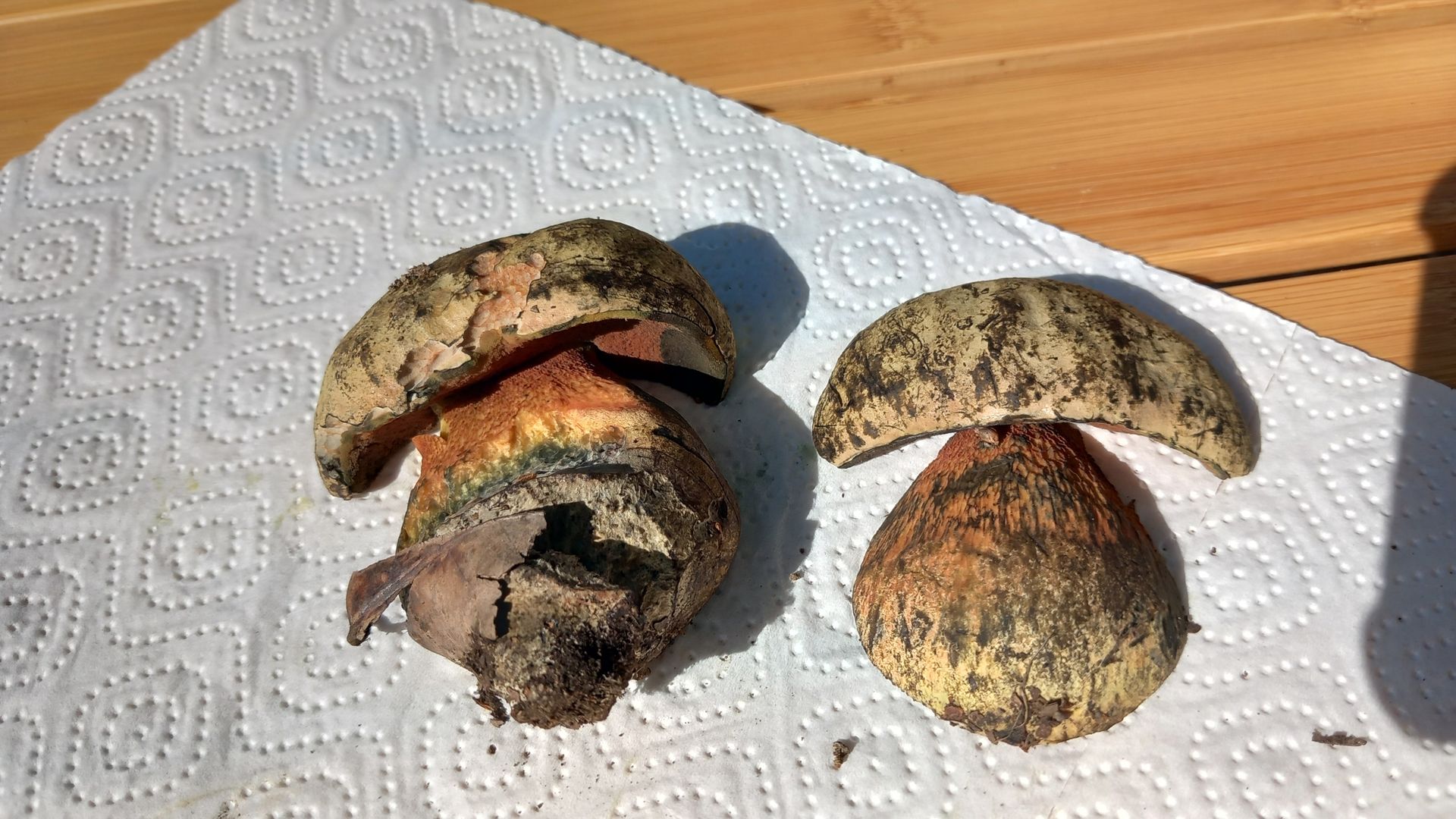 Bei dem ersten sehe ich einen glattstieligen Hexenröhrling. Was meint ihr?