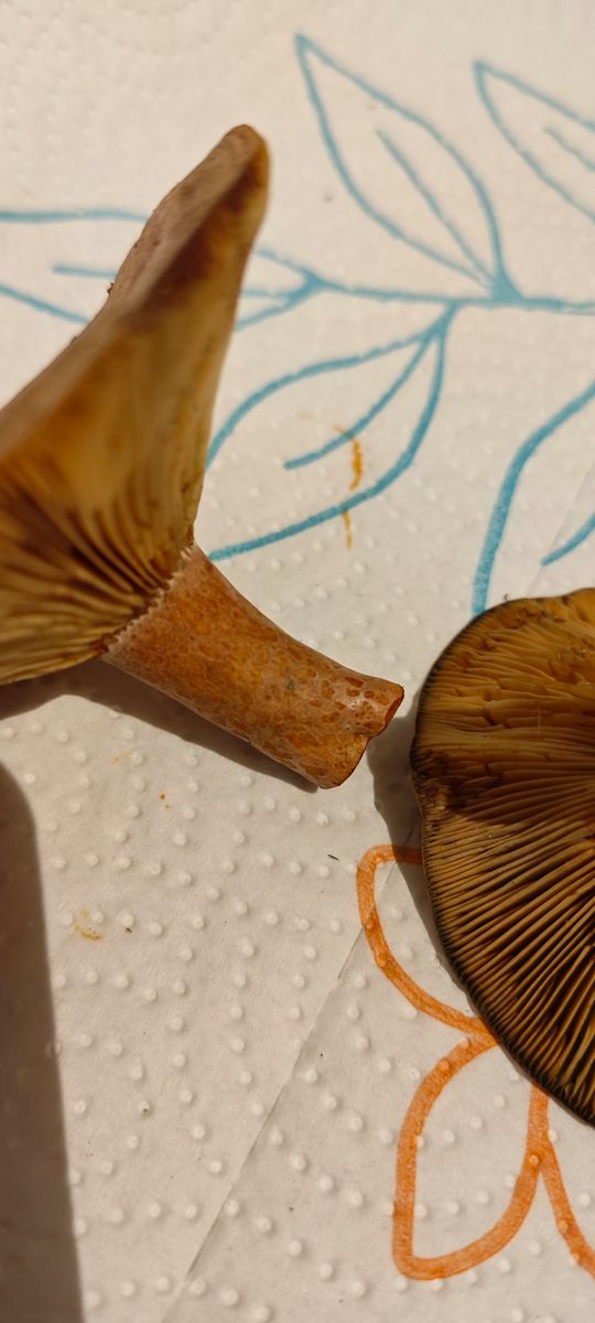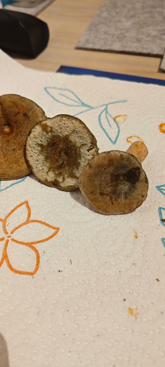 Er riecht unbedeutend/angenehm, verfärbt sich nicht, die Huthaut lässt sich etwa bis zur Hälfte ablösen, der Stiel ist voll (in der Mitte leicht wattig). Milch konnte ich nicht feststellen.
