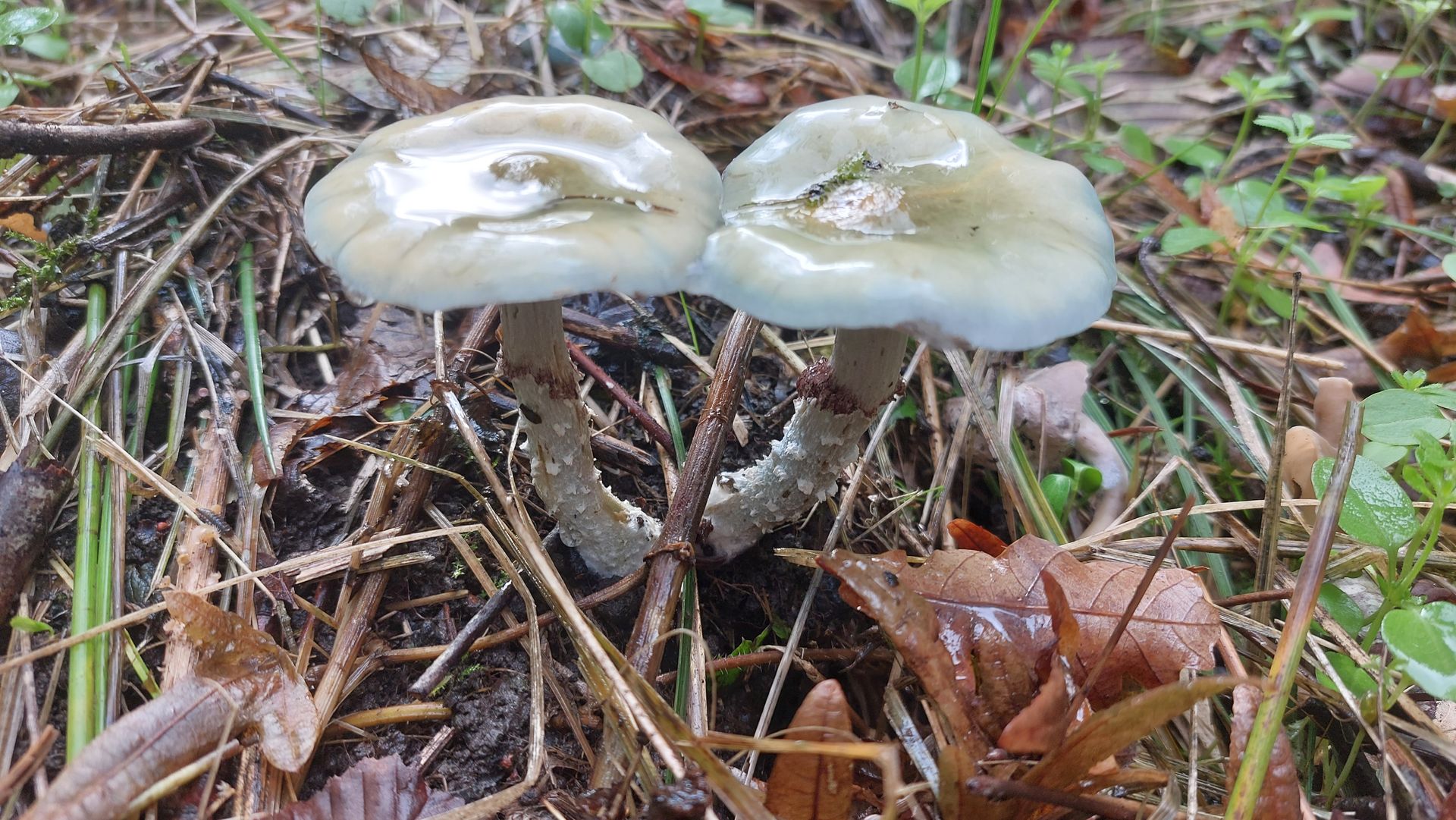 Die beiden nachfolgend gezeigten Fruchtkörper habe ich gestern in einem Mischwald in Norddeutschland gefunden, abgesehen von einer Lärche war eine wilde Mischung an Laubbäumen in der direkten Umgebung (Kirsche, Buche, Pappel, Ulme,...). Mit Schwärztäubling sollte ich hoffentlich richtig liegen, oder?