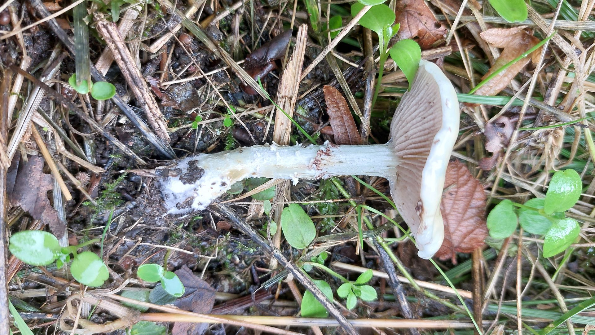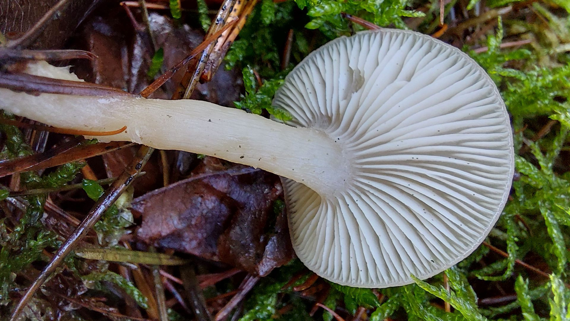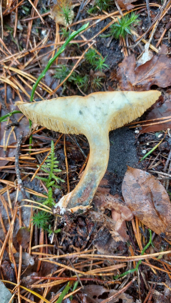 Zu Claus Vorschlag: Für einen Fruchtkörper, der sich nach Verletzung zunächst rötlich und dann graubraun verfärbt, und den ich bei der Geschmacksprobe aufgrund der sich entwickelnden Schärfe ausspucken muss, hätte ich einen Frauentäubling nicht mal in Erwägung gezogen. Hast du solches Eigenschaften beim Frauentäubling schon erlebt? Auch sind die nach meiner Erfahrung Frauentäublinge auch Stunden nach dem Anschnitt (oder anderen Verletzungen) noch so ziemlich reinweiß. (Biegsame Lamellen treten ja nicht exklusiv beim Frauentäubling auf.) Ich bin verwirrt.