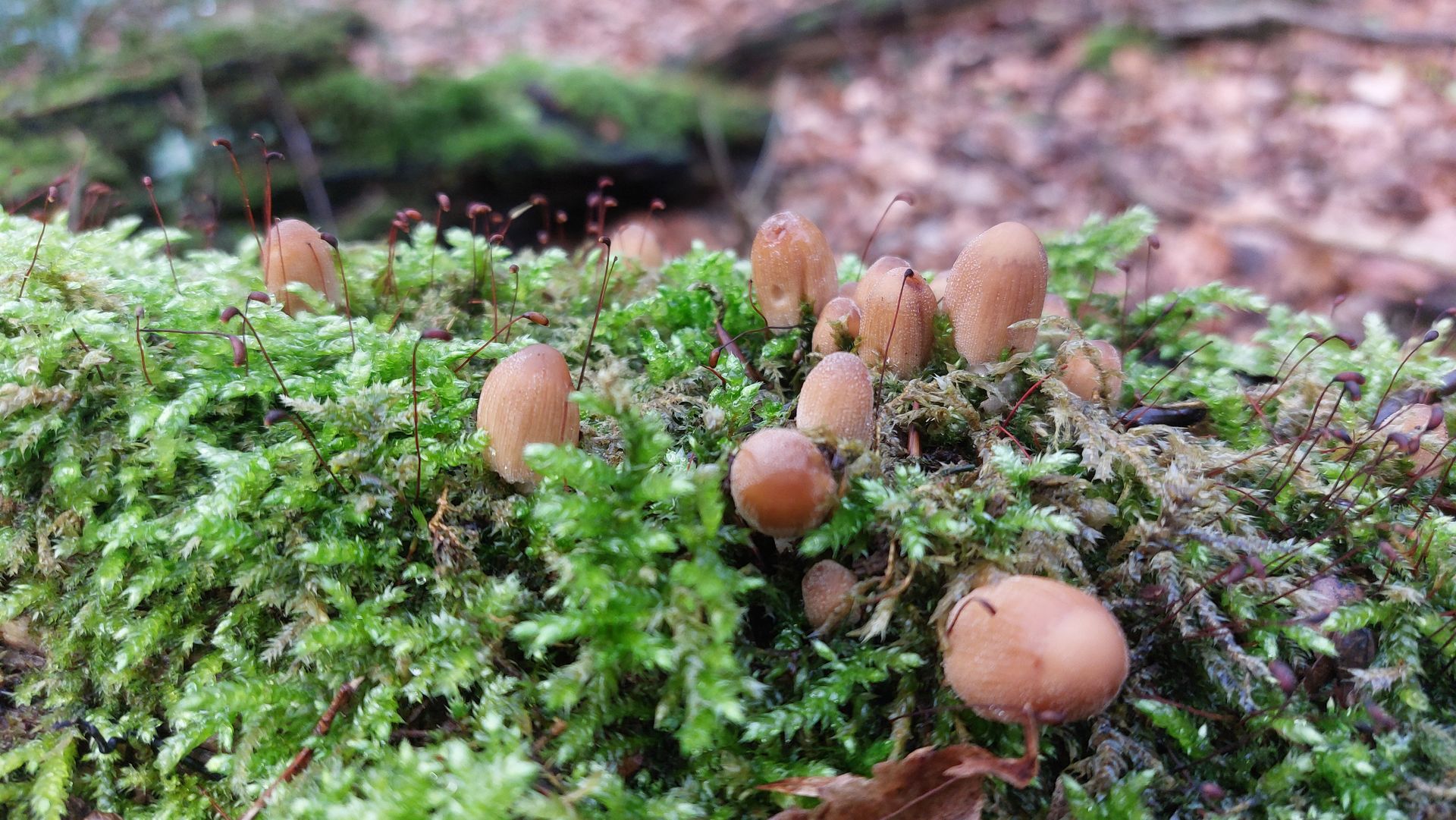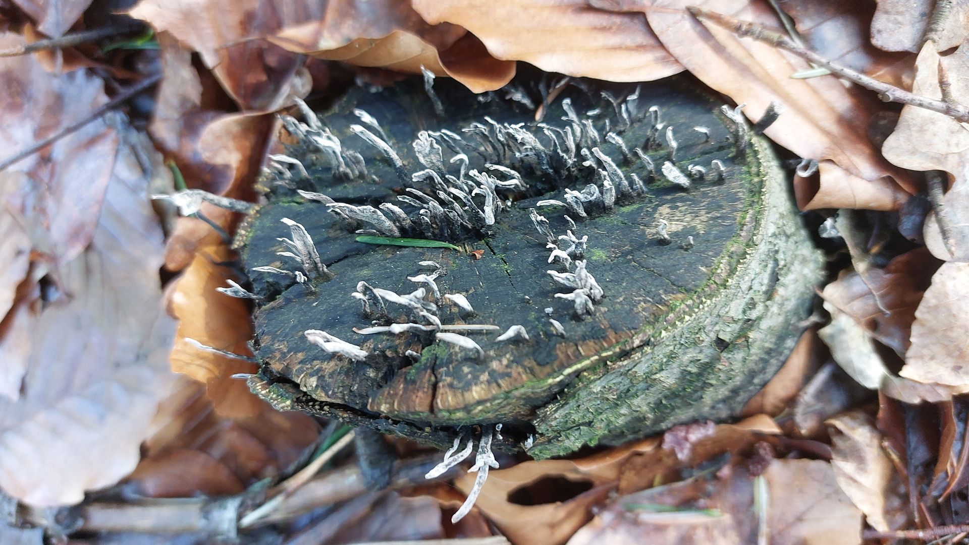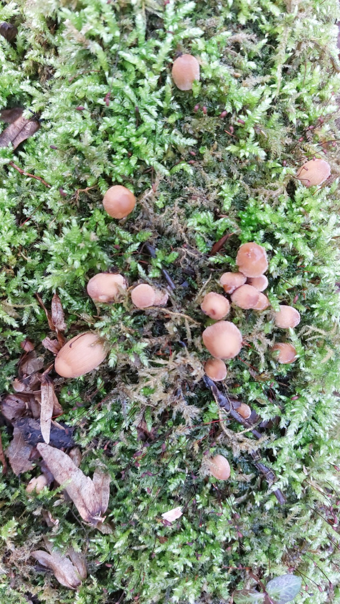 (1) Hier gleich mal ein Fund, bei dem ich gar keine Idee habe. Gefunden vor ein paar Tagen in einem Laubwald (hauptsächlich Buche und Eiche) mit ein paar vereinzelten Fichten, das Substrat habe ich aber leider nicht identifiziert. Die einzelnen "Röschen" sind ca. 1cm groß, einen auffälligen Geruch habe ich nicht wahrgenommen.