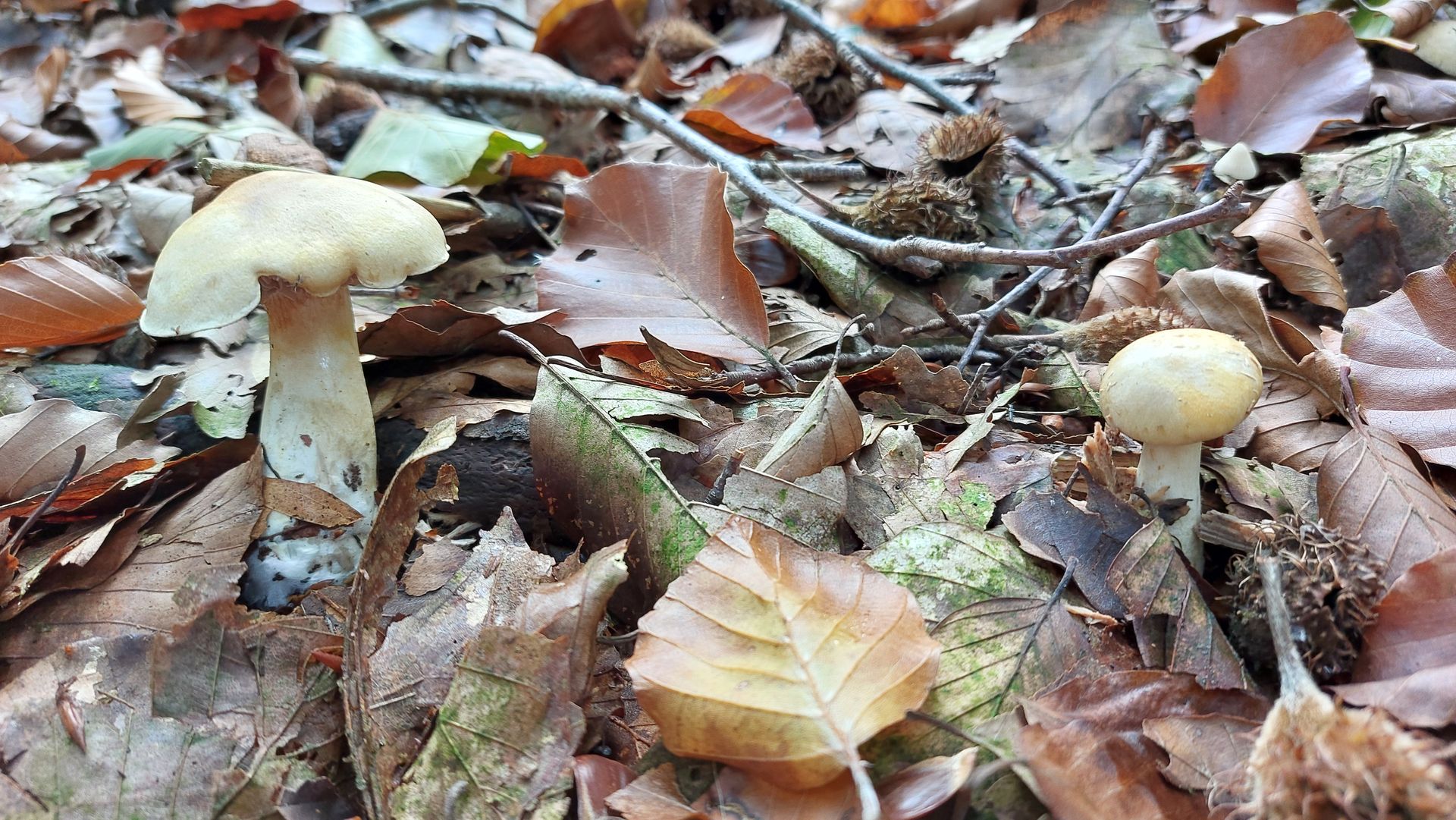 Hallo liebes Forum! Ja, ich weiß, Cortinarien auf Artebene sind schwierig, nochmal mehr für jemanden wie mich, der nicht mikroskopiert. Ich wäre trotzdem sehr interessiert an euren Kommentaren und Vorschlägen zu unten beschriebenen Funden. Meine Arbeitshypothese ist der Braunviolette Dickfuß (C. anomalus), aber ich bin mir nicht mal sicher, ob die Bilder ein und dieselbe oder zwei verschiedene Arten zeigen. Alle Bilder sind letztes Wochenende im Umkreis von 50m in einem Buchenwald im niedersächsischen Flachland aufgenommen.