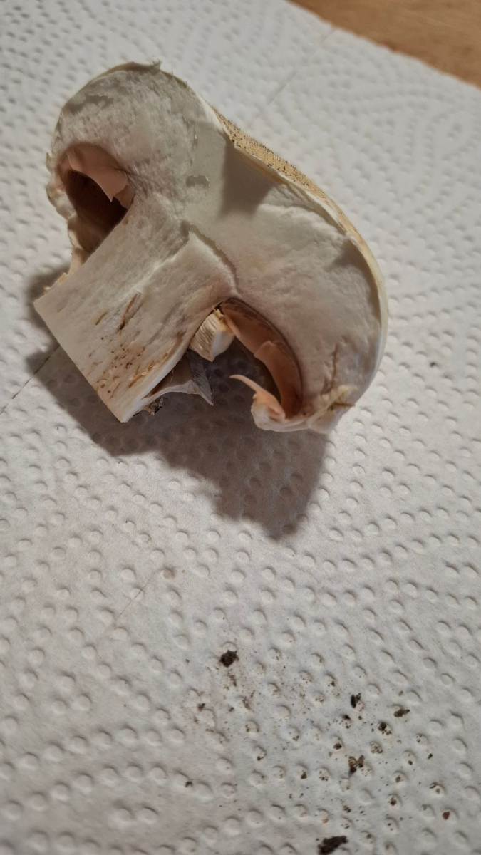 Nach meiner Ansicht keinerlei Verfärbungen im Schnitt, auch nicht an der Stielbasis.