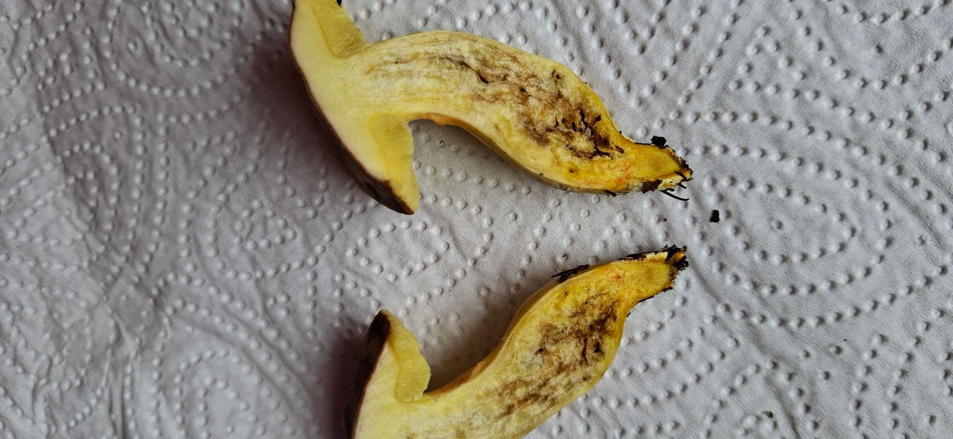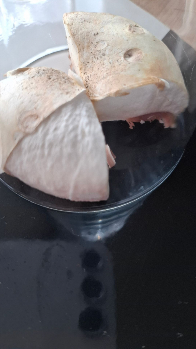 Die Huthaut lässt sich übrigens sehr schön abziehen. Im Hutfleisch nach wie vor alles weiß.