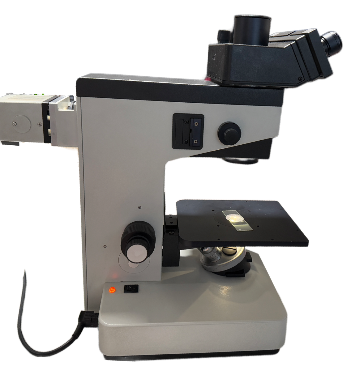 Ich verkaufe dieses voll funktionsfähige Invert Mikroskop der Marke Leitz Labovert. Das Mikroskop ist mit einem großen Probentisch ausgestattet, der ausreichend Platz bietet, um Proben in verschiedenen Arten zu betrachten.