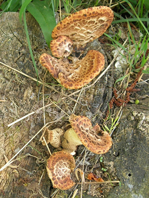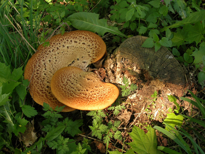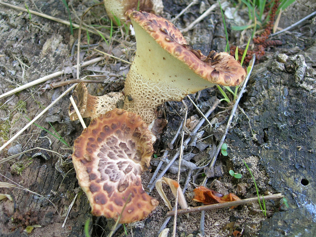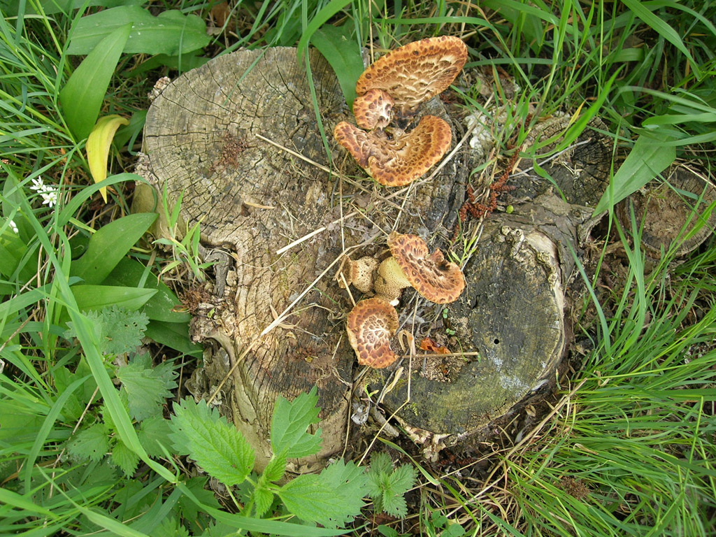Großer Schuppenporling? dicampi 26. April 2009 Hallo!Ist das ein Großer Schuppenporling? Heute fotografiert im Lainzer Tiergarten, Wien. Standort: Feuchte 5 m-Zone neben Bachlauf, Halbschatten. Holzstumpf vermutlich Buche oder Eiche. Hut gute 25 cm. Junge Pilzkörper angeknabbert.Alf