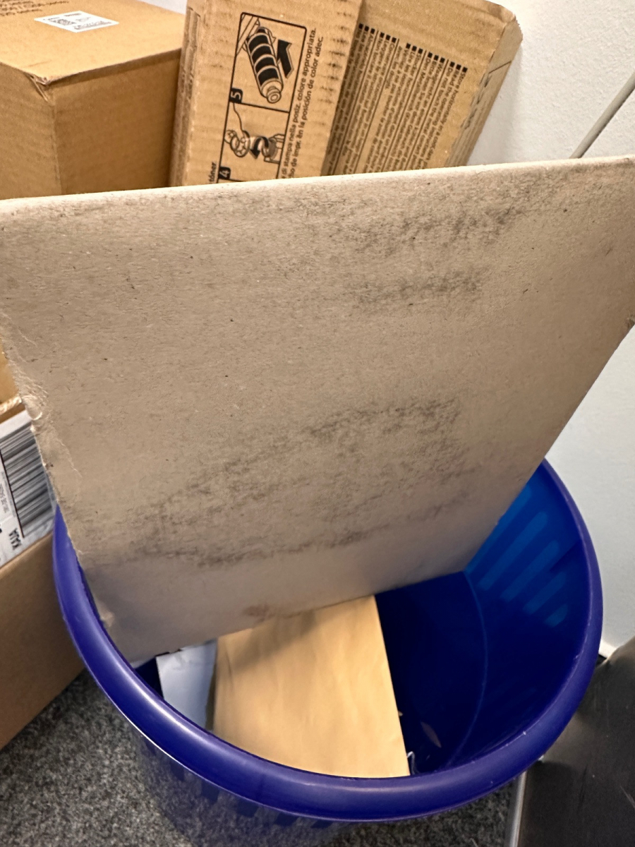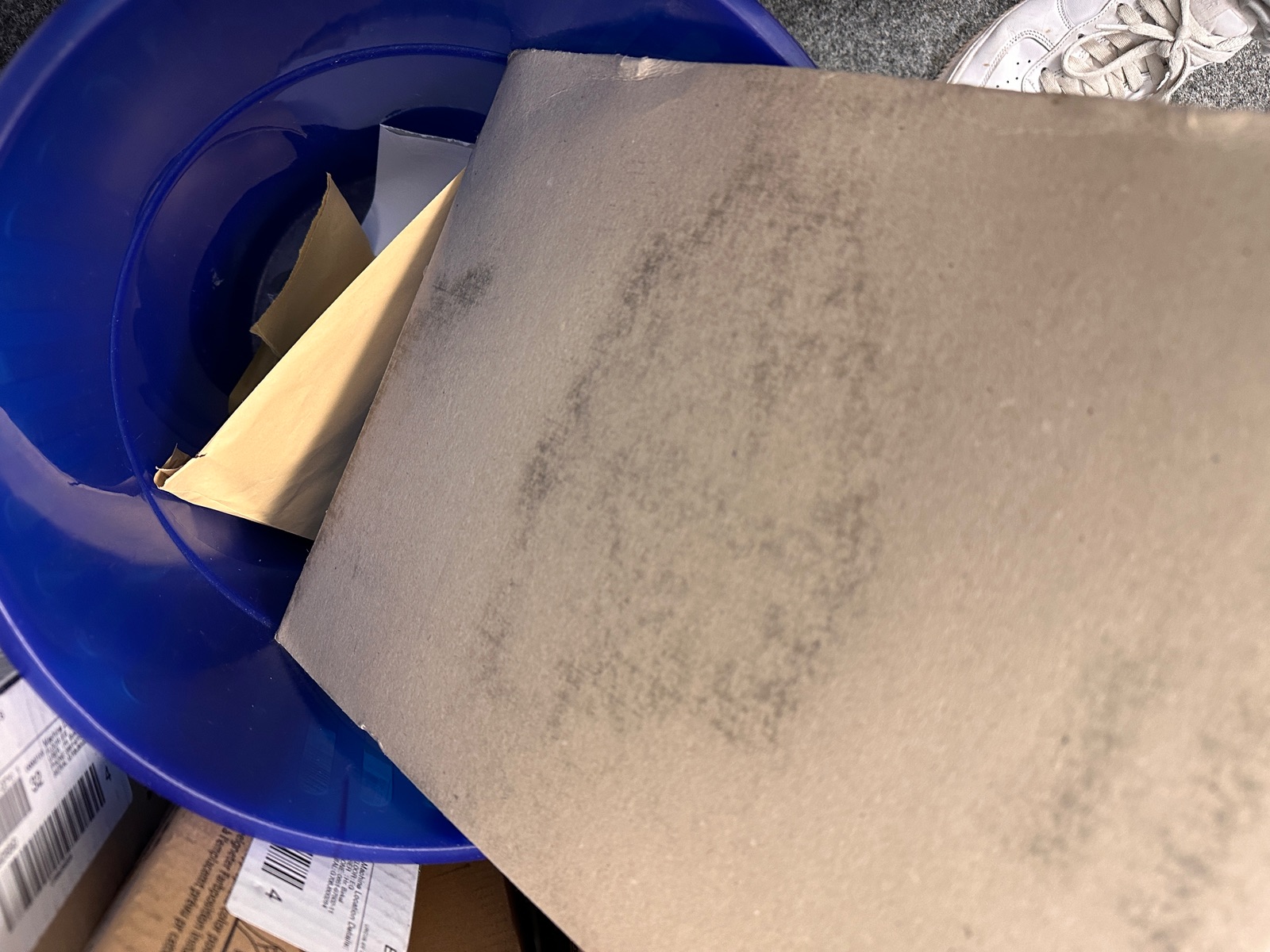 Auf der Arbeit musste ich heute ein paar Kartons räumen. Ich habe dabei diesen auf dem Foto angepackt bis mir aufgefallen ist das er komisch gefärbt ist.