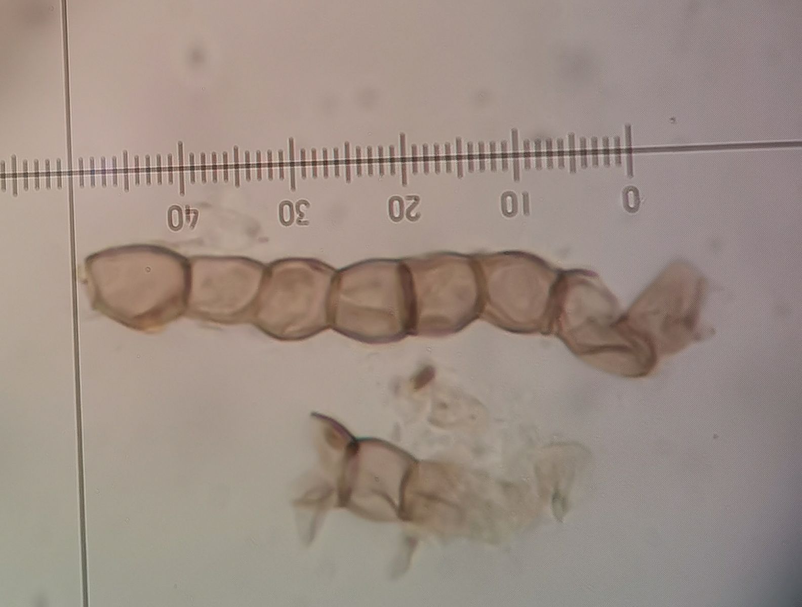 Ich habe mich sofort an Diaporthe zurückerinnert, als ich die Sporen gesehen habe. Mir ist davor nie aufgefallen, dass es noch andere Pilze gibt, die auch solche Sporen haben, außerhalb der Ordnung Diaporthales. Man lernt nie aus.
