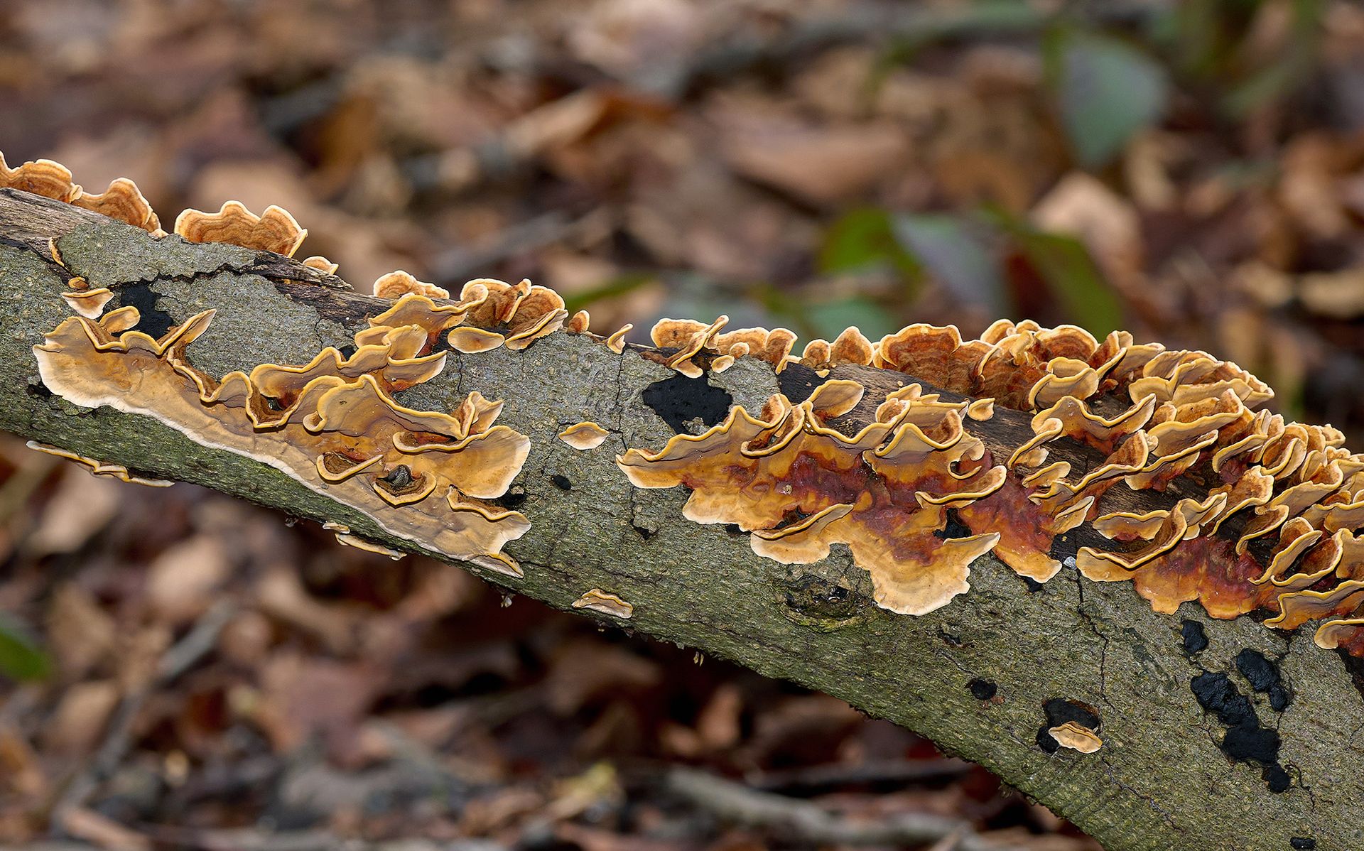 Liege ich sehr falsch wenn ich den samtigen Schichtpilz resp.Stereum subtomentosum im Verdacht habe?