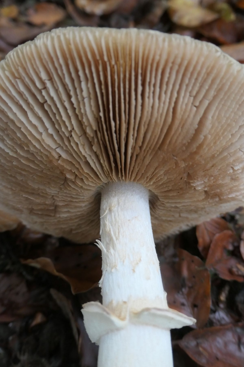 Gestern 17.10. bei CH-Schnottwil im Bucheggberg SO in einem Laubmischwald mit reichlich auch Eichen diesen Champignon angetroffen mit den grauen Flecken auf dem Hut, dieser in der Mitte dunkler,