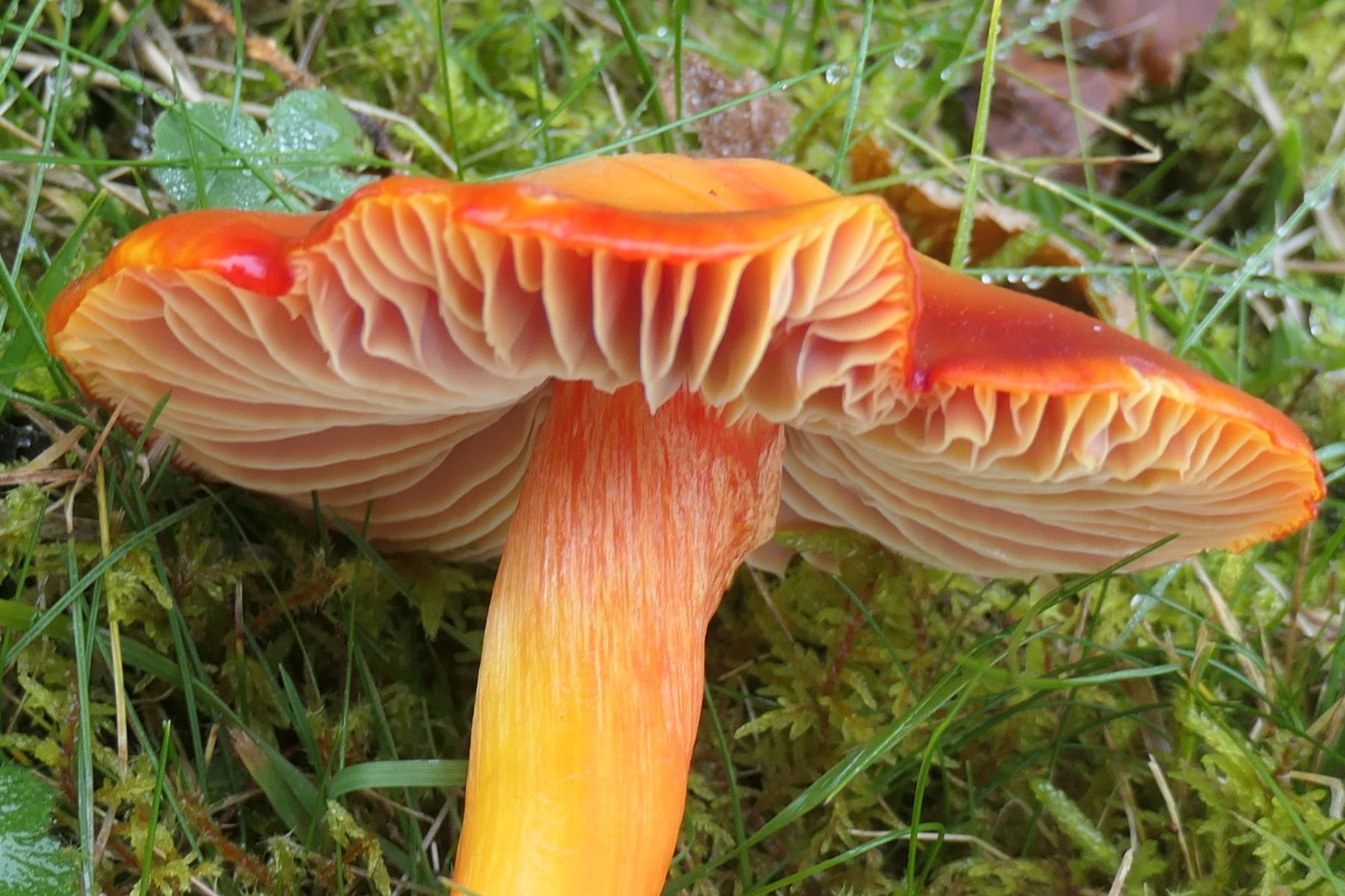 Gestern 01.11. hatten wir das grosse Glück, auf den extensiven Trockenweiden oberhalb CH-Romont BE Jura drei Expl. von diesem imposanten Saftling anzutreffen,