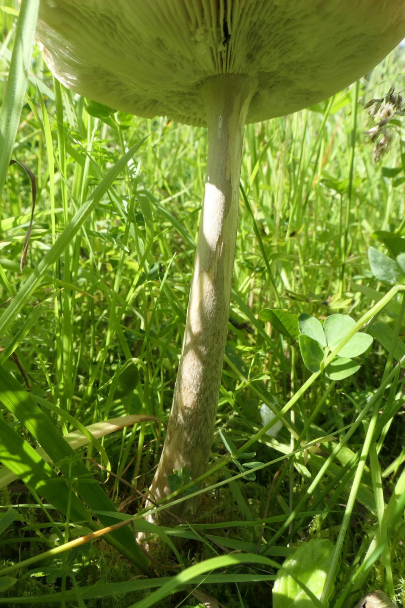 05.06.24 ein Expl. eines ca. 15 cm hohen Pilzes, Hut um 10 cm mit radiärer Fältelung am Rande -